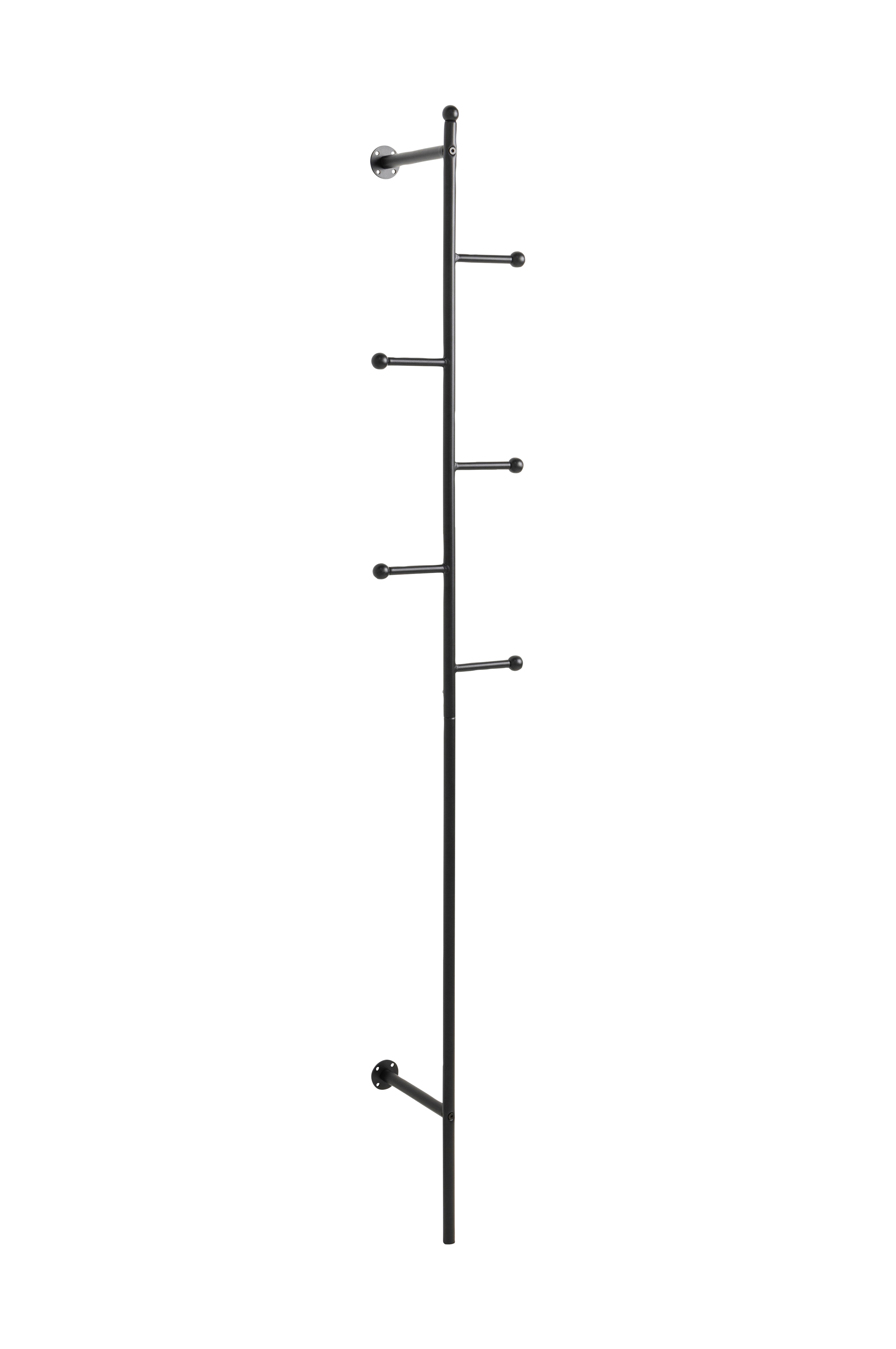 Denne vertikale kleshengeren er laget for å passe overalt, og er perfekt selv på de trangeste steder. Siden den er beregnet for veggmontering, sparer den gulvplass. Med 5 kroker får du plass til yttertøy og kanskje en paraply eller veske. De rene linjene og det svarte metallet gir kleshengeren et kult, industrielt uttrykk.