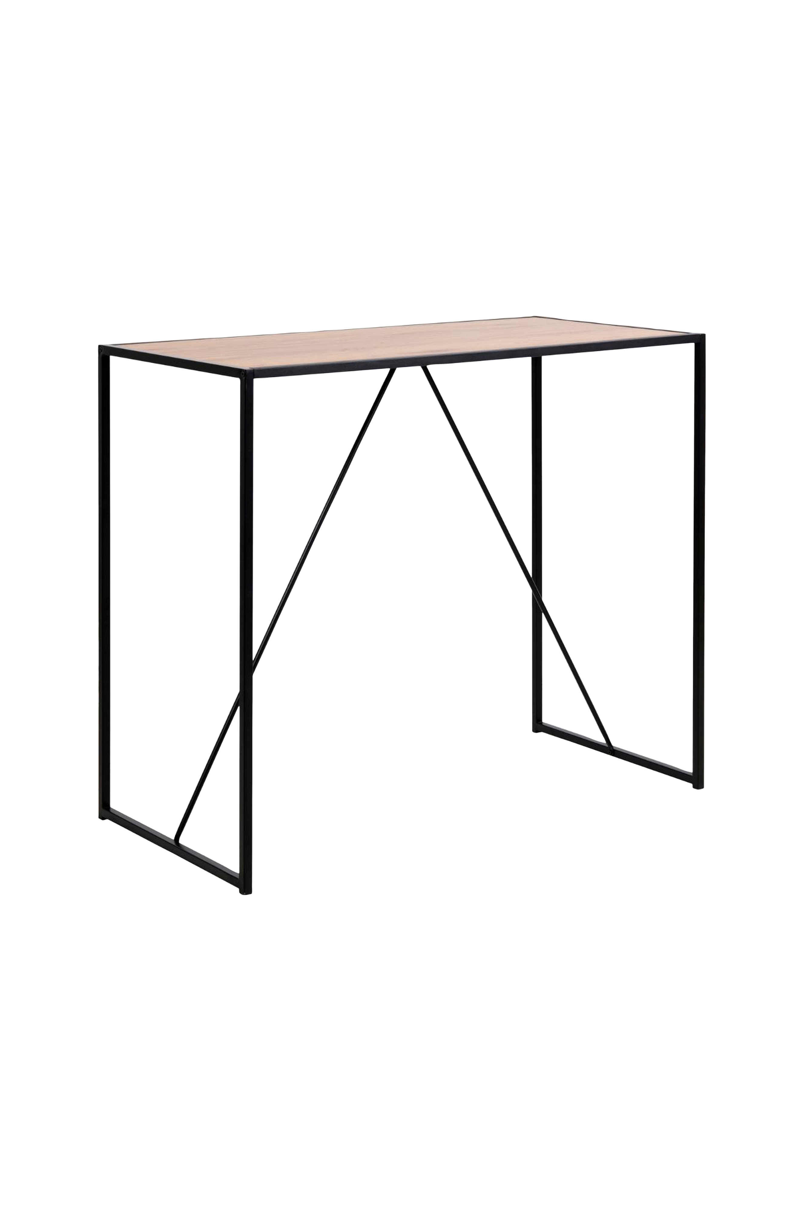 Dette barbordet med eksklusive designrettigheter er den perfekte detaljen som gir rommet en pen stil. Bordet er moderne, og den kule metallstammen gir det en industriell twist. Stammen kombineres med bordplaten med eikeeffekt på en perfekt måte, og skaper et moderne møbel som passer de fleste hjem. Bordplater av foliert MDF.