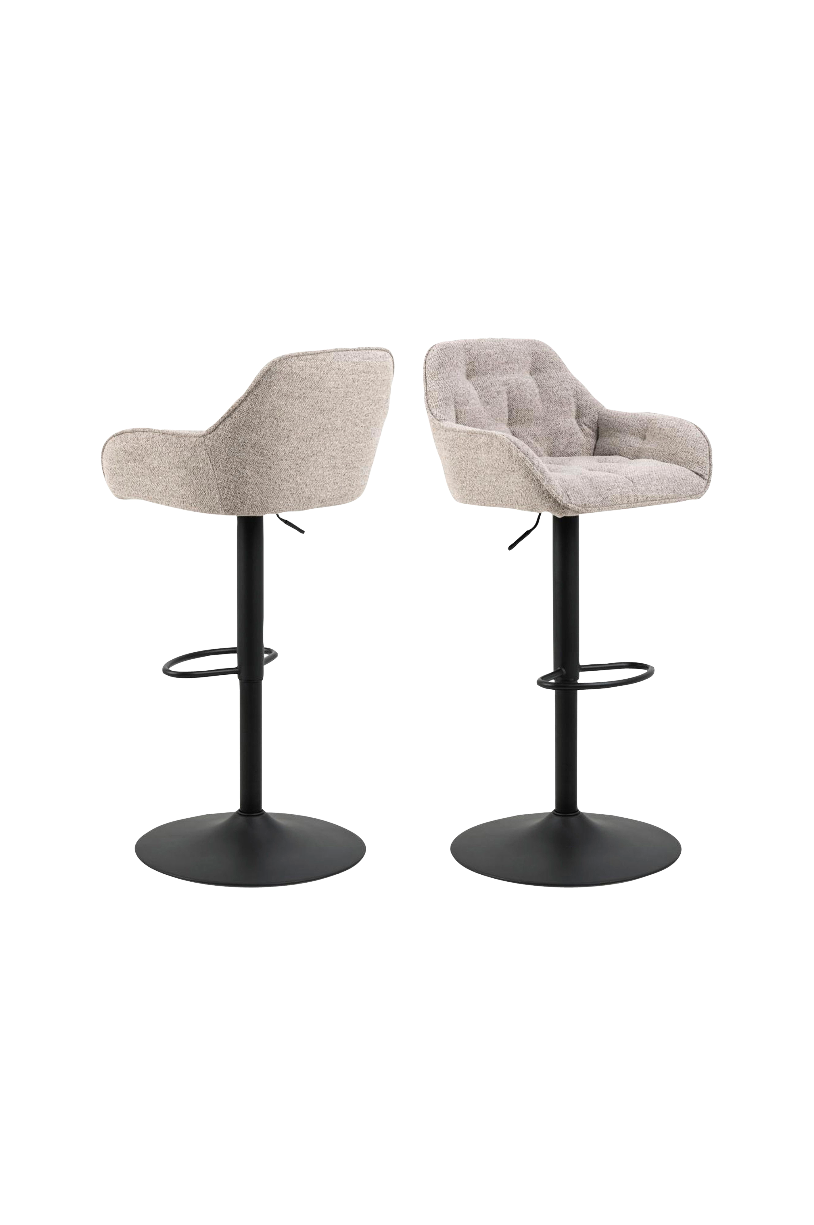 Til morgenkaffen eller ettermiddagsdrinken er denne barkrakken et perfekt tilskudd til ethvert kjøkken. Den er trukket i et mykt, beige boucléstoff med en luksuriøs, krøllete struktur. Den vakre tuftingen gir møbeltrekket et romantisk preg. Setet er plassert på et trompetunderstell i svart stål med gassløft, fotstøtte og dreiefunksjon.