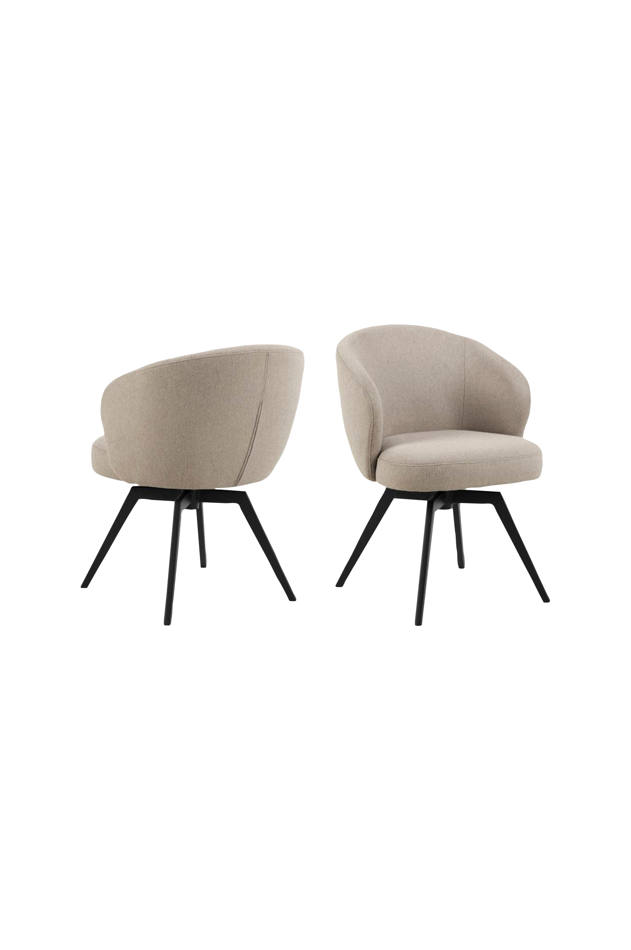 Darlene spisestol med armlener, alea stoff beige 60 fr, understell matt svart pulverlakkert stål, med 3-felts sømmer, auto-return, pocketfjærer, svingbar og glidelås - denne spisestolen med armlener har en moderne design uten kompromisser. Det elegante, avrundede setet er trukket i et beige stoff med en rik tekstur. Stolen har lommefjærer som gir god sittekomfort, og den har dreie- og automatisk returfunksjon for enklere forflytning med minimal innsats.