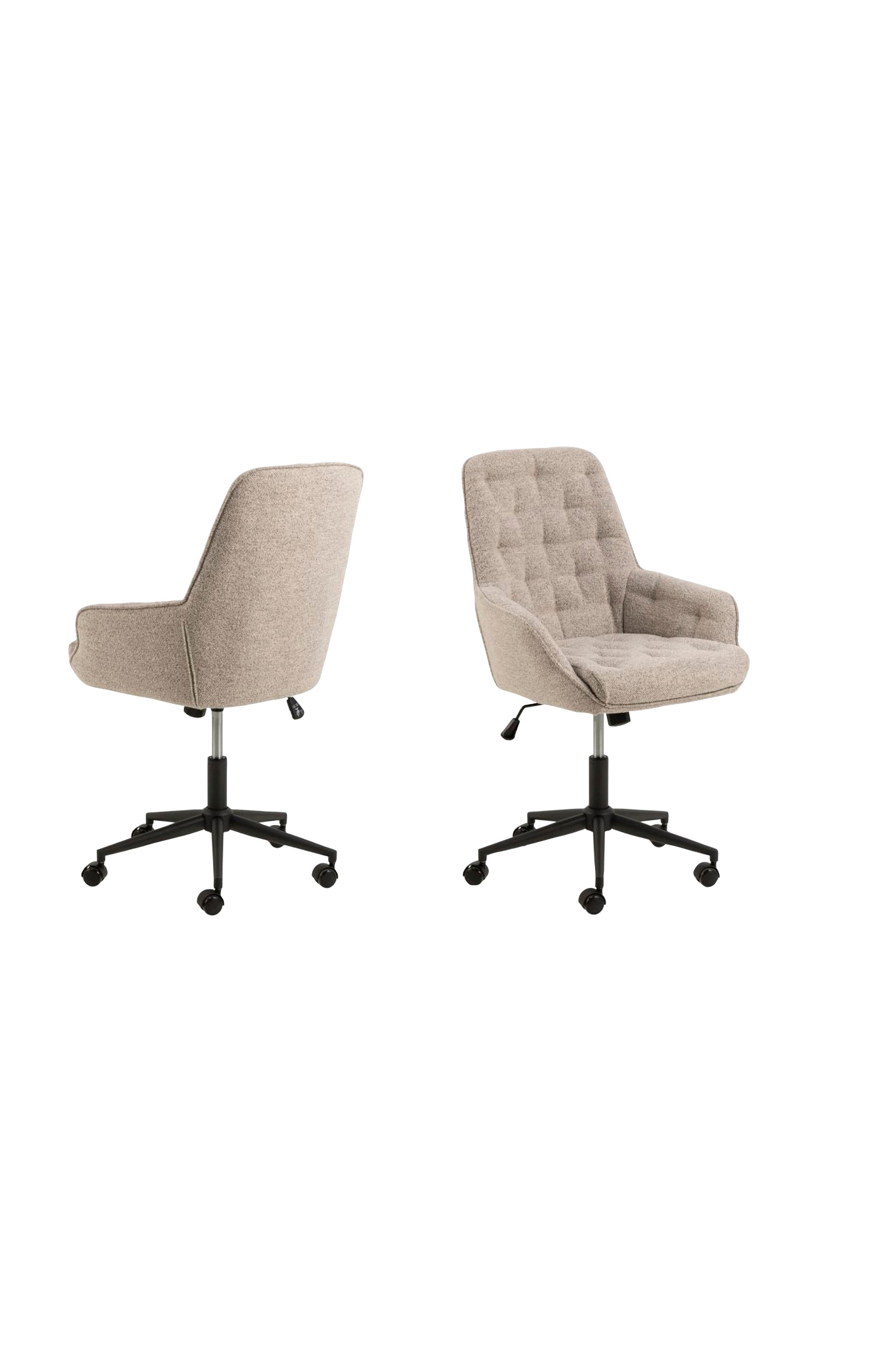 Slipp kreativiteten og produktiviteten løs med denne tuftete skrivebordsstolen - en perfekt blanding av estetikk og funksjonalitet. Med tuftede detaljer og krøllete bouclé-stoff tilfører stolen et stilfullt innslag i rommet ditt. For at du skal sitte komfortabelt, kan stolen justeres i høyden og roteres.