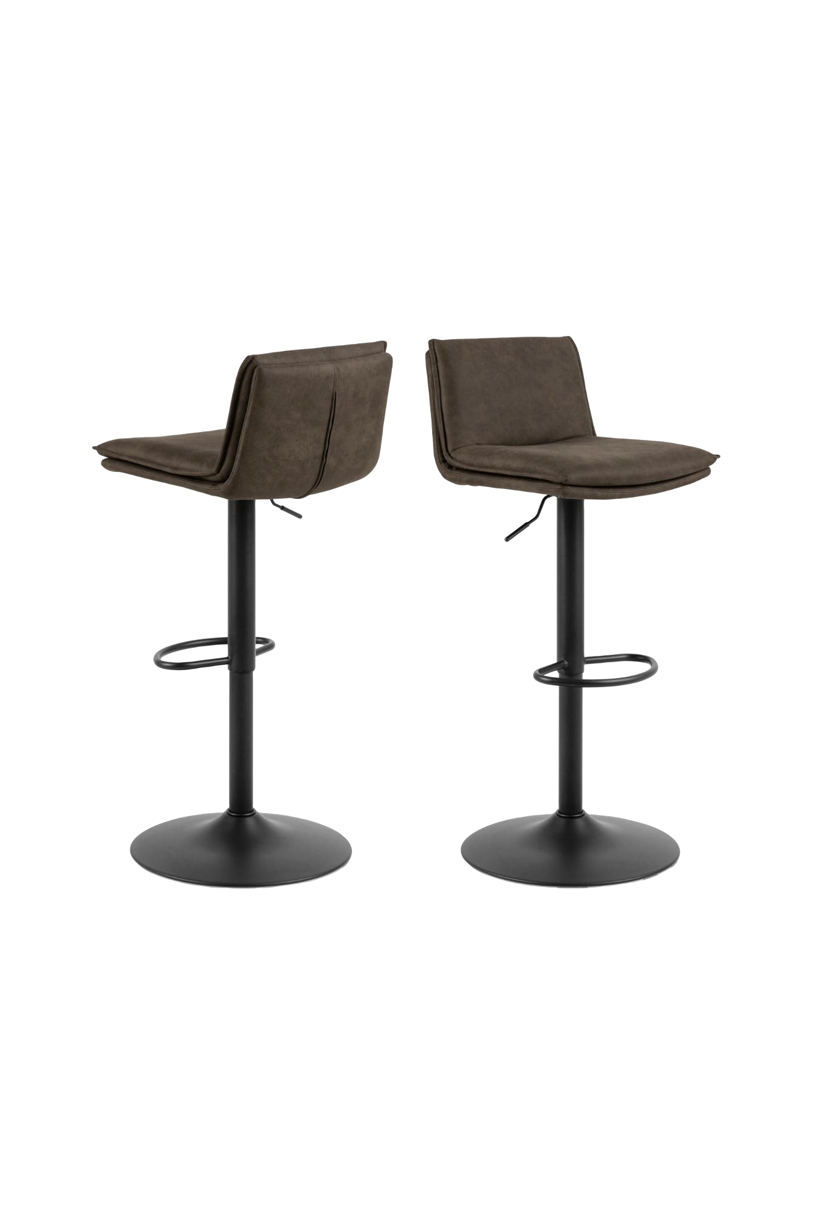 Med sin klassiske silhuett er denne dreibare barkrakken perfekt til morgenkaffen eller kveldsdrinkene. Du får en klassisk barkrakk med noen fine detaljer - bare legg merke til de franske sømmene. Setet, som nesten er formet i ett stykke, er trukket i et antrasittfarget mikrofiberstoff med et spesielt belegg som gir den rå looken. Det grove, pulverlakkerte trompetunderstellet i metall kan justeres slik at det passer til din foretrukne høyde.