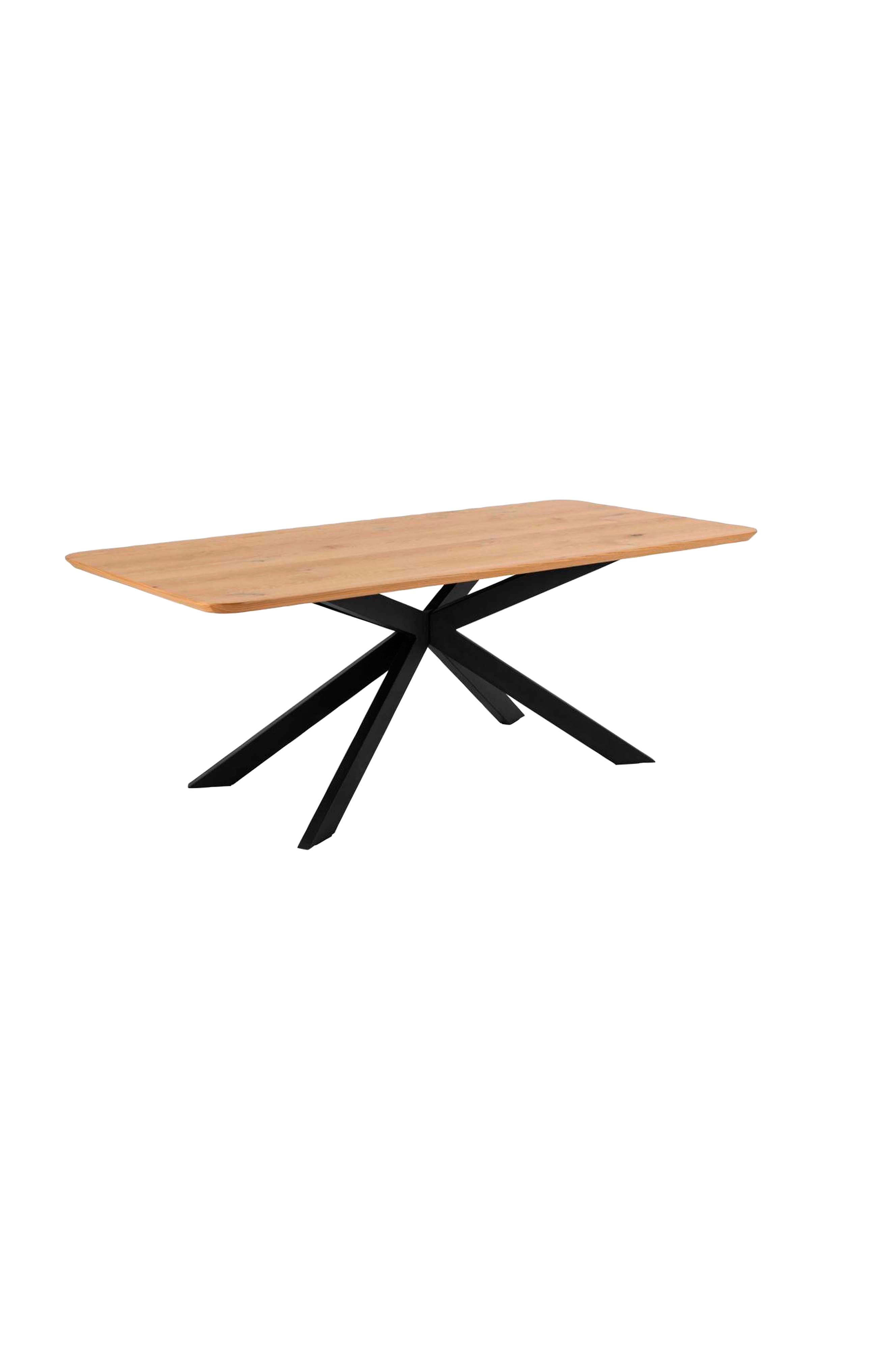 Irwine rektangulært spisebord, bordplate i matt eik nc-lakkert villfinér, kryssunderstell i matt svart pulverlakkert stål, 200x100x75 cm