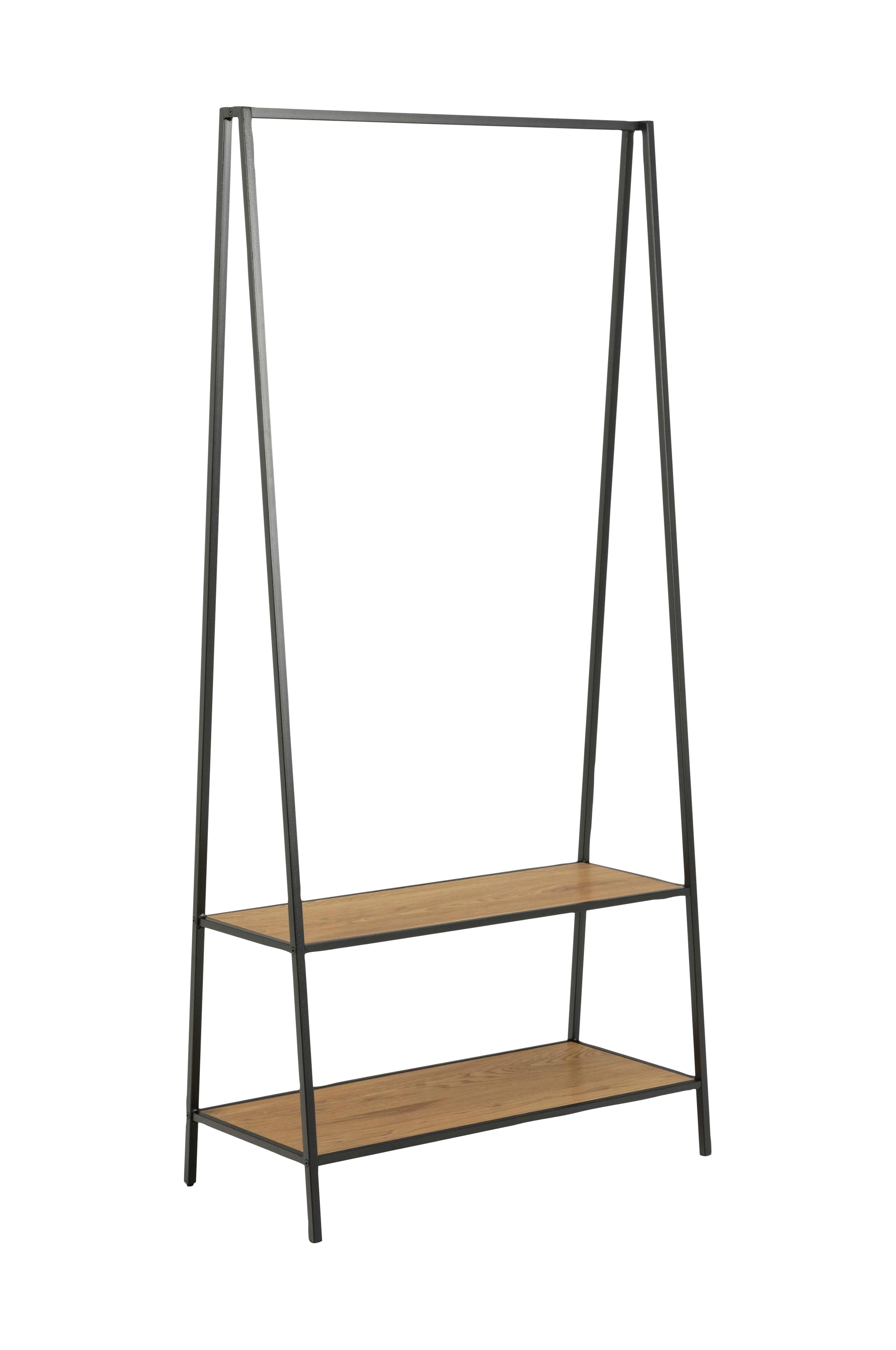 Klesstativ / garderobe produsert av nøye utvalgte materialer som er lettstelte. Med eksklusive designrettigheter er dette klesopphenget den perfekte detaljen som gir rommet en pen stil. Møbelet har en slående treeffekt og pulverlakkert metallstamme, og kan kombineres med mange ulike interiørstiler. Plater av foliert MDF.