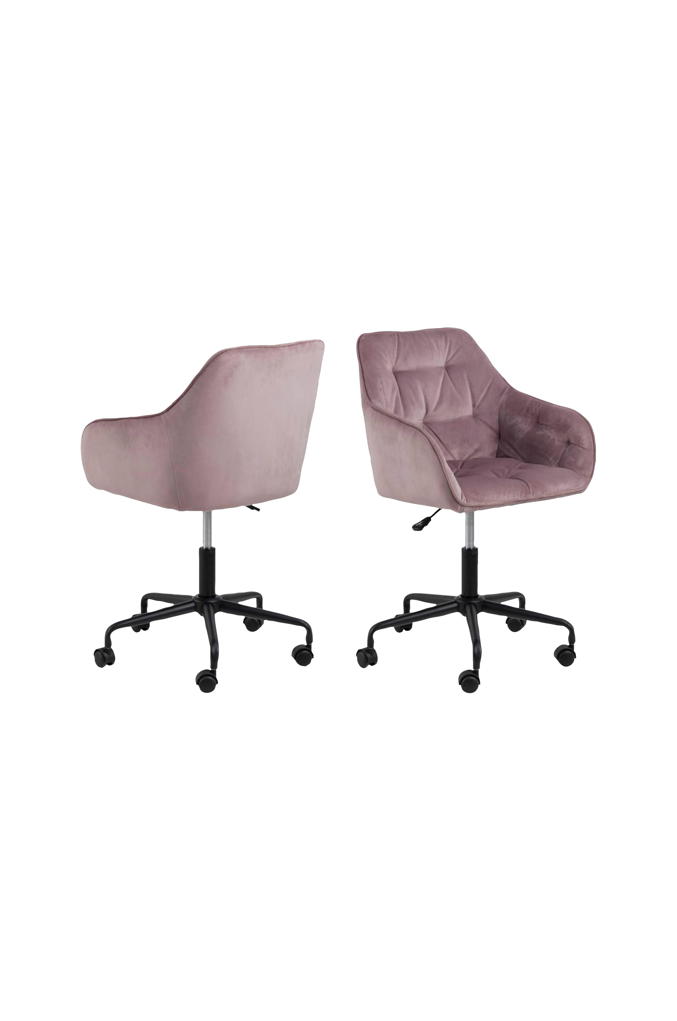 Det perfekte skrivebordet er en selvfølge for deg som søker både komfort og stil. Den myke fløyelen og tuftingdetaljene gir stolen en luksuriøs følelse. Fløyelen gjør at stolen skifter farge avhengig av lys og retning, noe som gir den en levende og rik følelse. For å gjøre hverdagen enklere kan du svinge stolen takket være det 5-stjerners metallunderstellet og justere høyden ved hjelp av gassløftemekanismen. Sittehøyden kan justeres fra 46 cm - 55,5 cm.