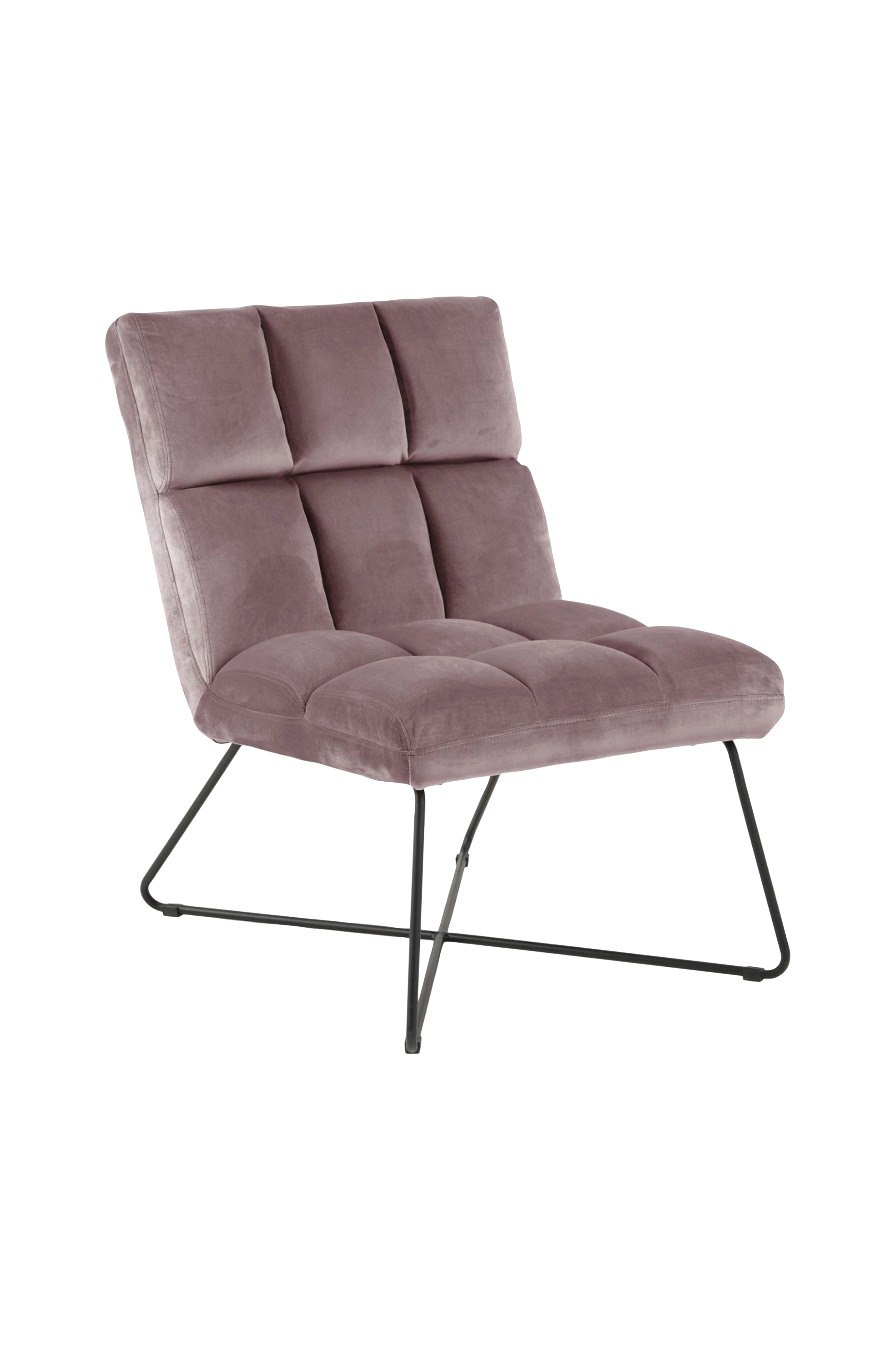 Si hei til din nye favorittplass til å krype oppi med en god bok. Denne loungestolen er smal, men likevel sterk, og blir et skulpturelt innslag i hjemmet. Fløyelsstoffet gir et livlig inntrykk, og den pulverlakkerte, kryssede metallstammen gir den et industrielt preg. Fløyelsstoffets farge skifter avhengig av lyset og retningen på luggen, noe som gir en luksuriøs følelse.
