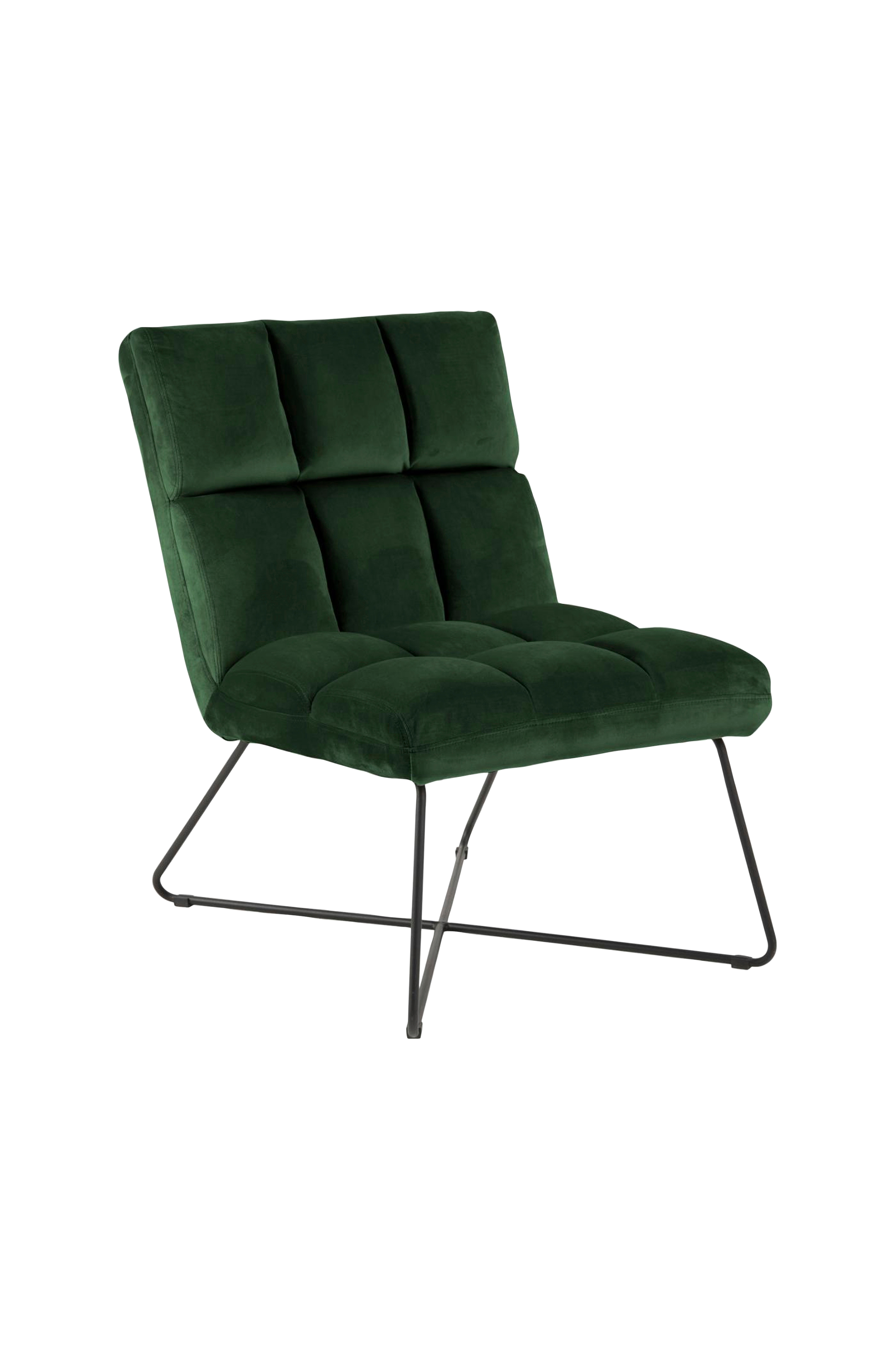 Si hei til din nye favorittplass til å krype oppi med en god bok. Denne loungestolen er smal, men likevel sterk, og blir et skulpturelt innslag i hjemmet. Fløyelsstoffet gir et livlig inntrykk, og den pulverlakkerte, kryssede metallstammen gir den et industrielt preg. Fløyelsstoffets farge skifter avhengig av lyset og retningen på luggen, noe som gir en luksuriøs følelse.