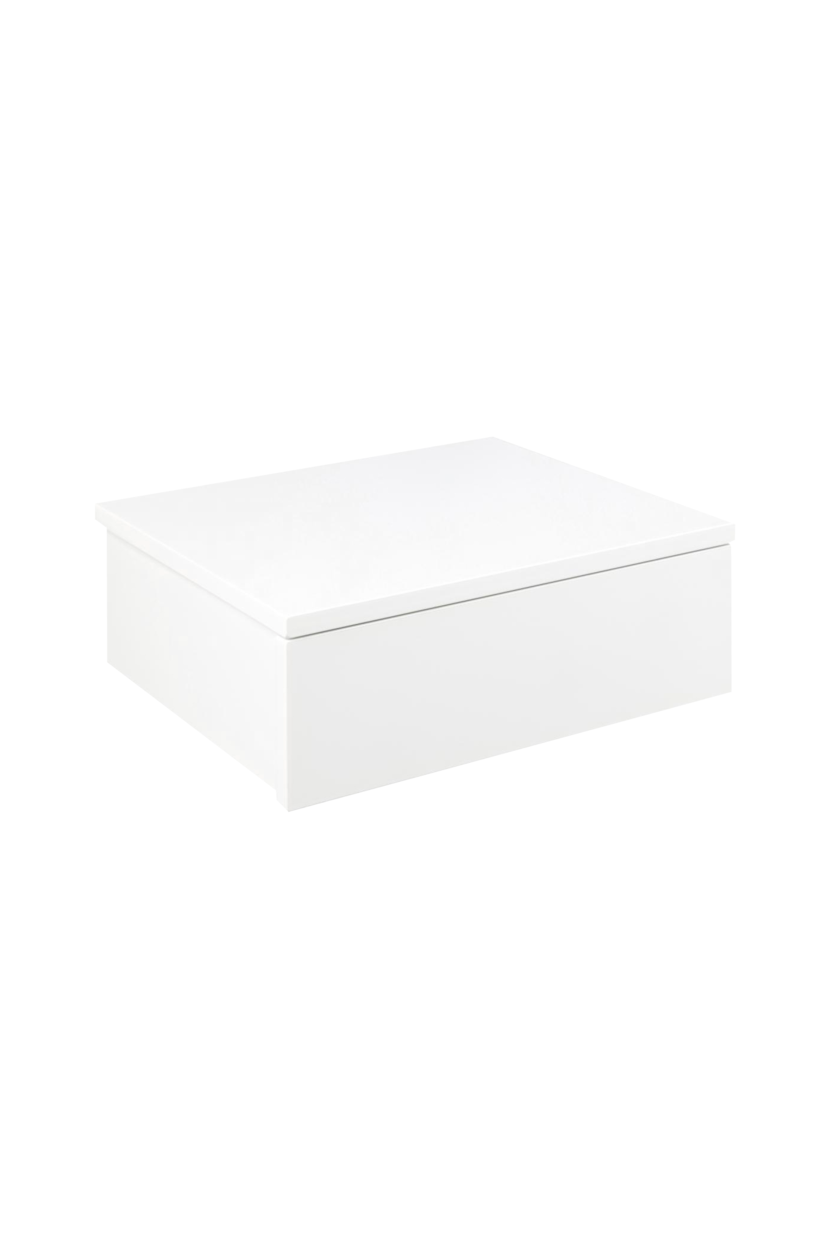 Den perfekte partneren for alle soverom hvis du liker en minimalistisk, elegant stil. Med rene linjer og malt overflate dominerer ikke dette nattbordet soverommet. Det er lett å sette opp nattbordet ved siden av sengen i den høyden du ønsker. Skuff gir plass for bøker, briller og hva du enn behøver. MDF