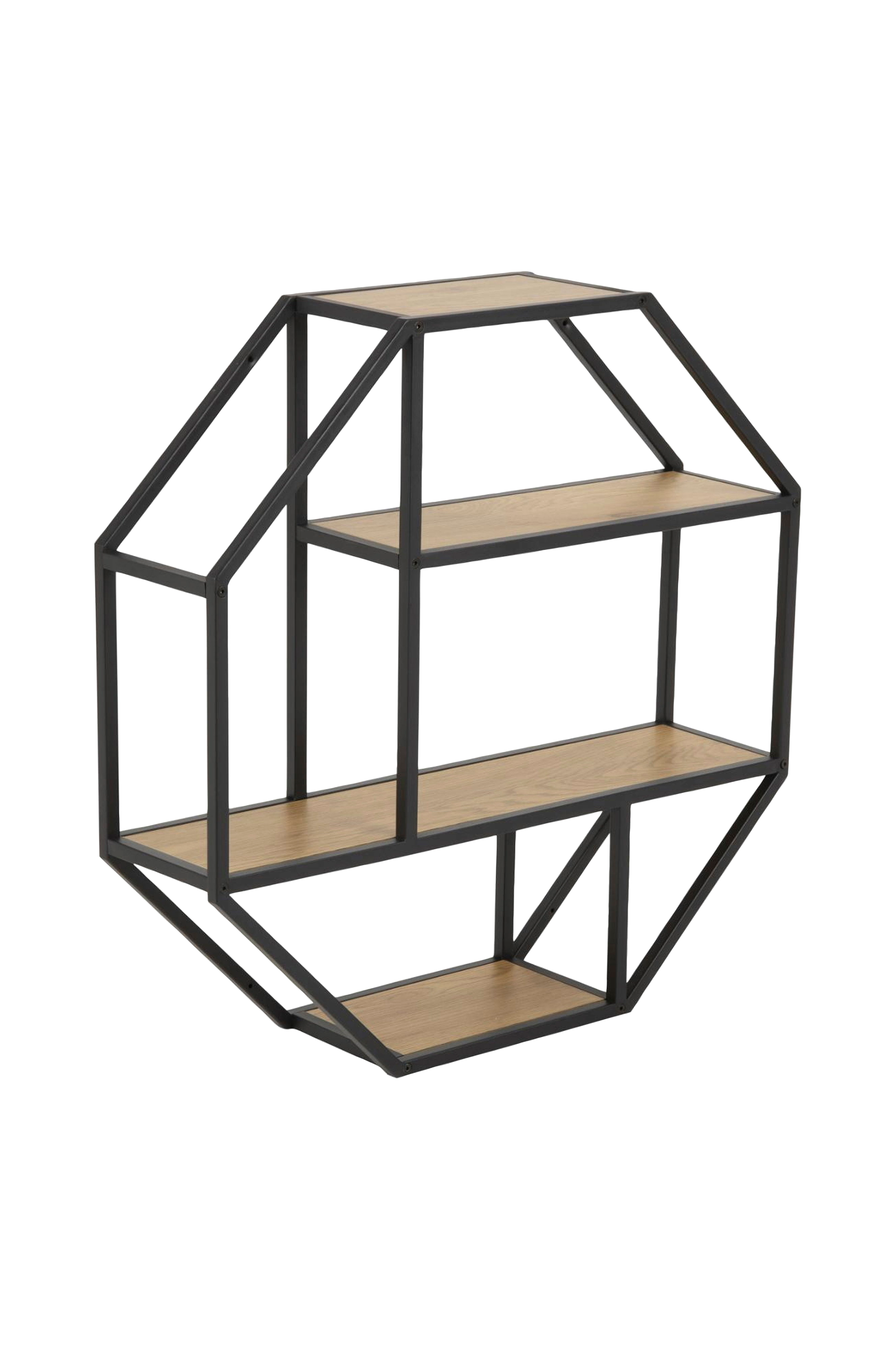 Seaford åttekantet vegghylle, ramme i matt svart pulverlakkert stål, 4 hyller i matt vill eik, med asymmetriske detaljer, 77x20x77 cm - gjør veggen din personlig med denne åttekantede vegghyllen som understreker karakteren til hvert enkelt objekt som stilles ut. Innenfor den svarte rammen er det tre asymmetrisk plasserte hyller med et utseende av vill eik. Det kontrasterende utseendet vil skille seg ut i ethvert moderne interiør.