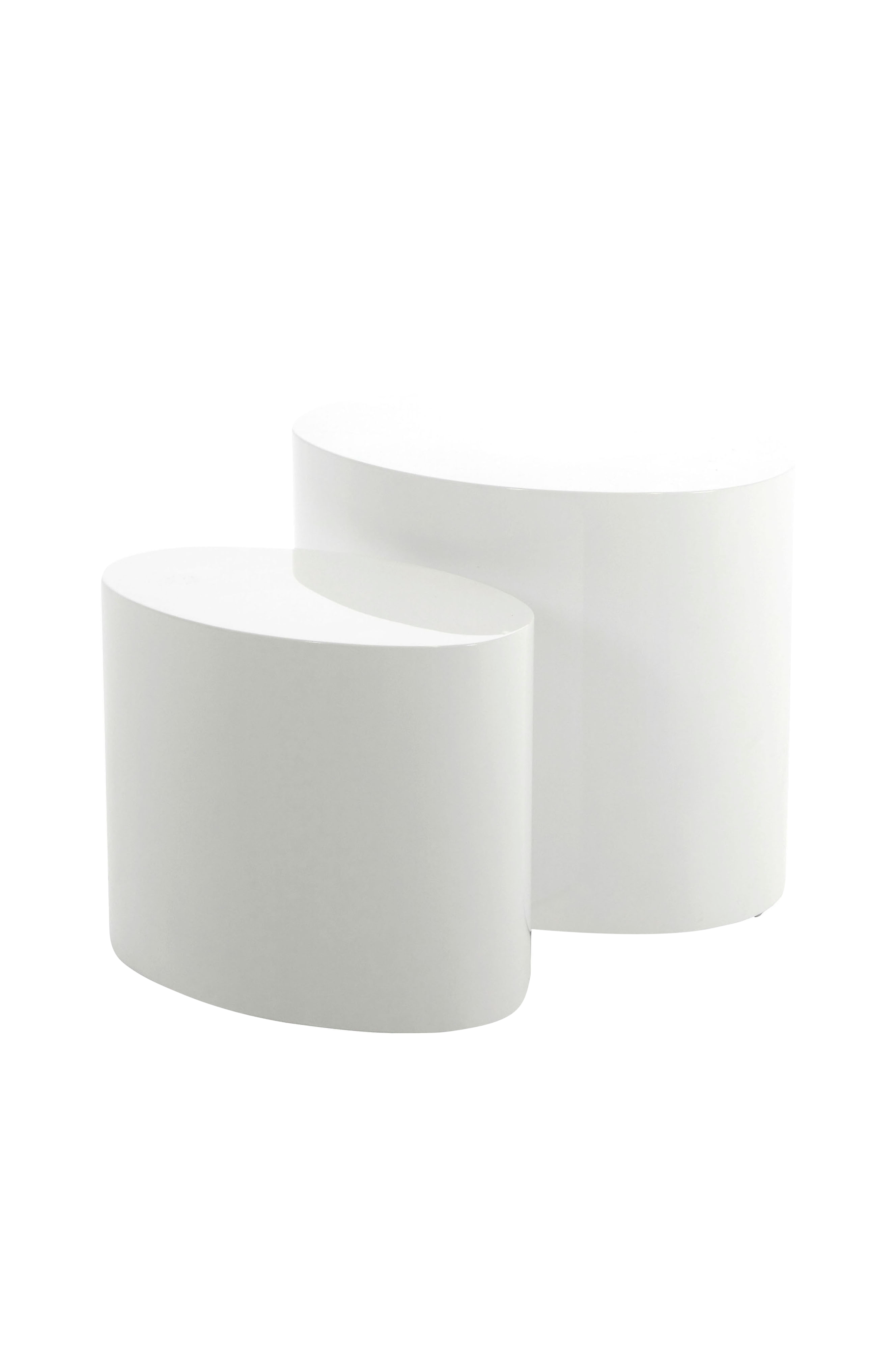 Sidebord sett med to ovale. Av malt MDF. Mål: det lille bordet: 24,5 x 40 cm, høyde 33 cm. Det store bordet: 33 x 48 cm, høyde 40 cm. Montert.