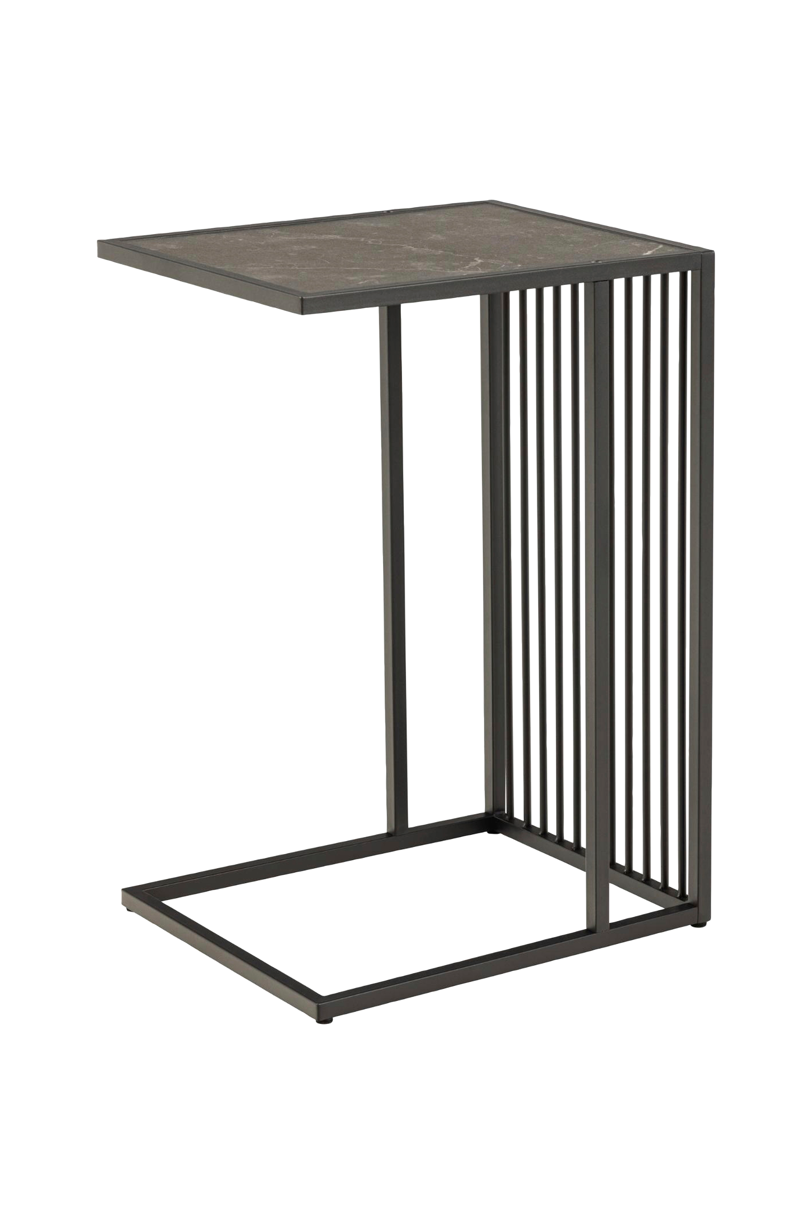 Hvem skulle trodd at et sidebord kunne være så kult? En slik design gjør det enkelt å sette et statement i ethvert moderne hjem. Den svarte metallrammen er utstyrt med vertikale metallister på to sider, mens bordplaten sjarmerer med sitt svarte marmorutseende. Style bordet med favorittvasen din, eller bruk det til datamaskinen mens du slapper av i sofaen.