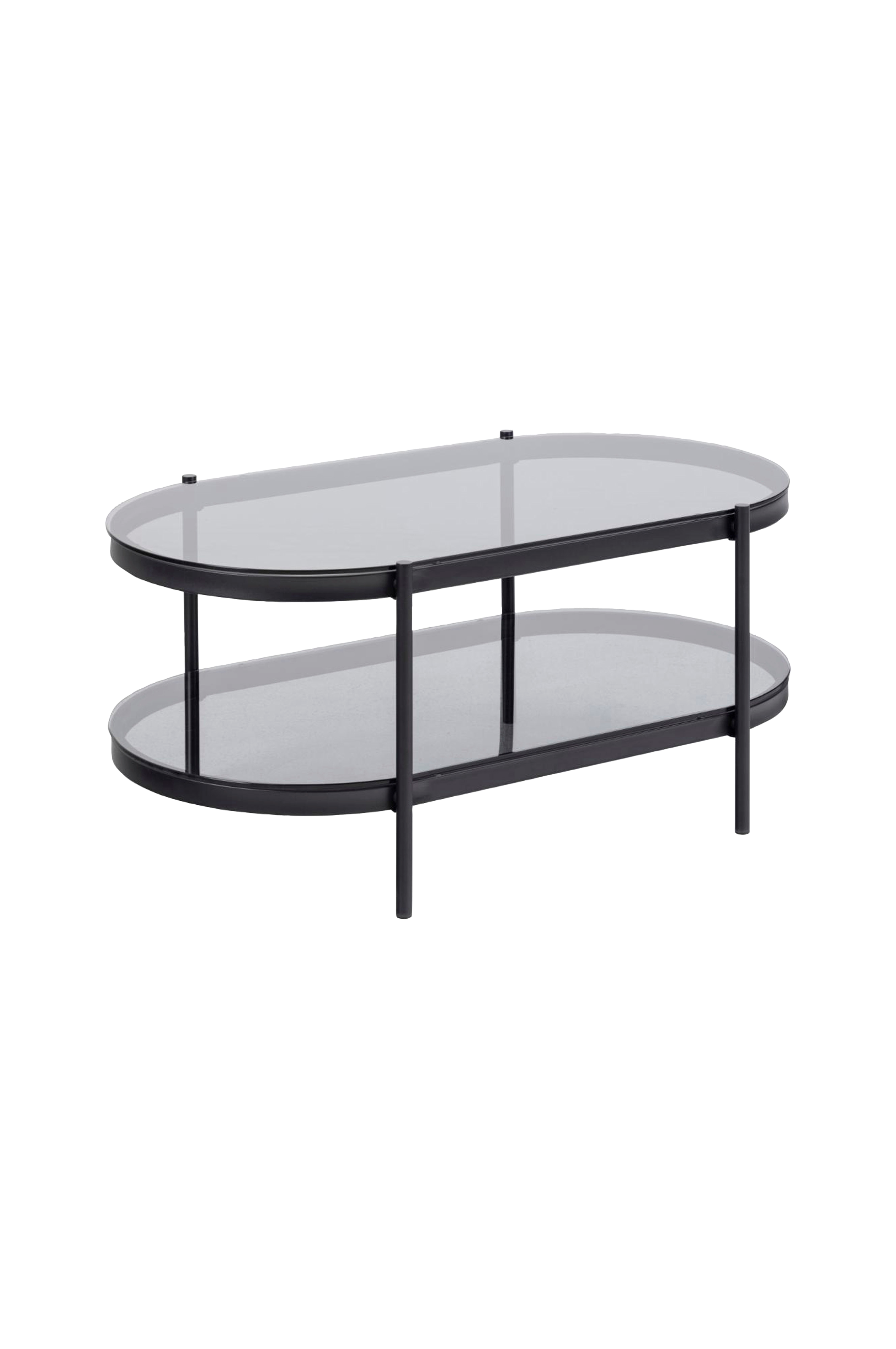 Skap en fin atmosfære i stua med dette sofabordet. Kombinasjonen av røykfarget glass og svart, pulverlakkert metall gir et sofabord som passer i et moderne hjem. Det har en hylle av røykfarget glass under bordplaten som gir ekstra plass til bøker, magasiner og andre personlige ting. Leveres umontert.