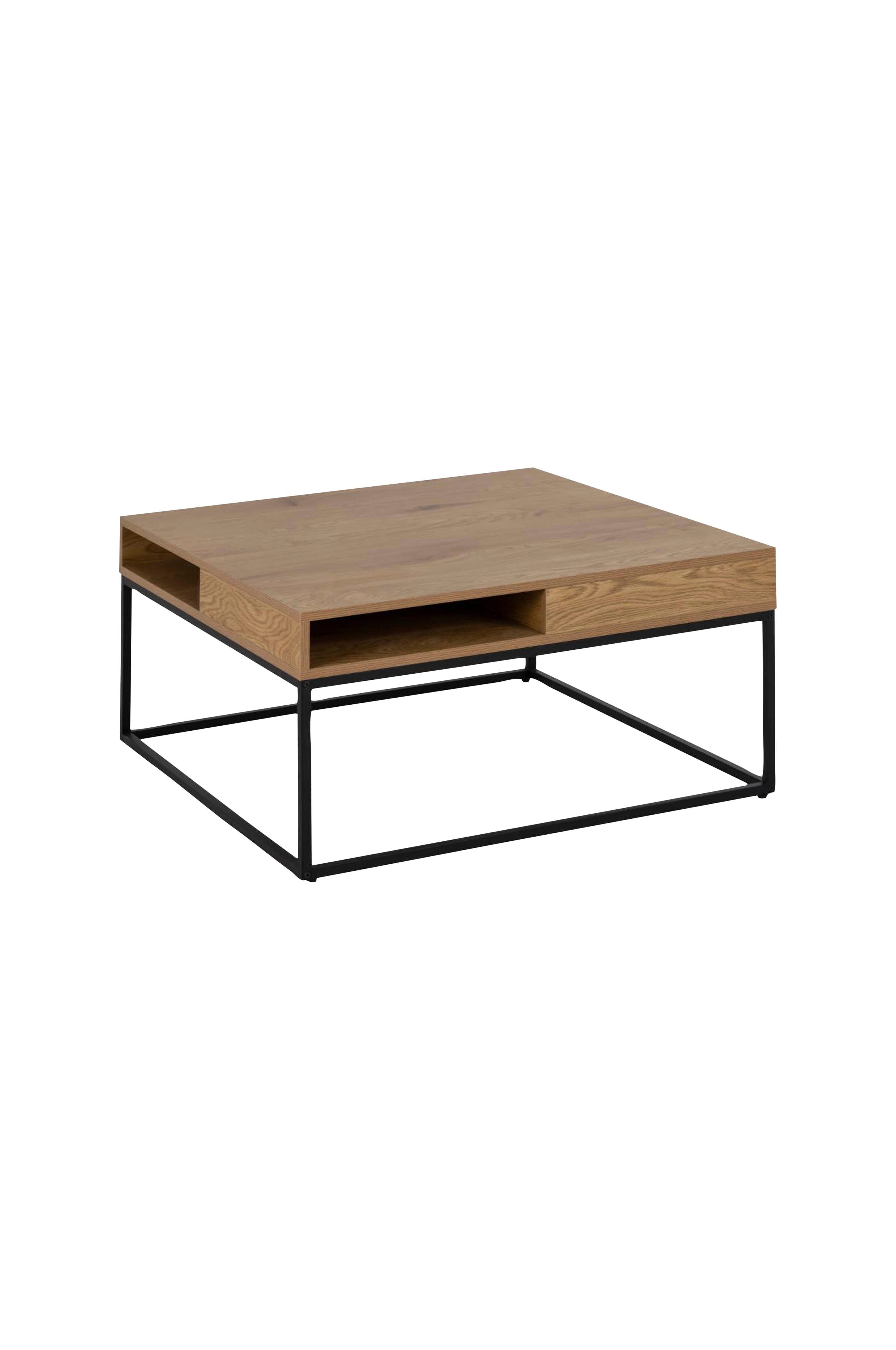 Sofabord med eksklusive designrettigheter som er både stilfullt og praktisk. Du kan oppbevare alle småting i de åpne rommene, og den store bordplaten gir god plass til vakre gjenstander. Overflaten av eik gir bordet en naturlig følelse.