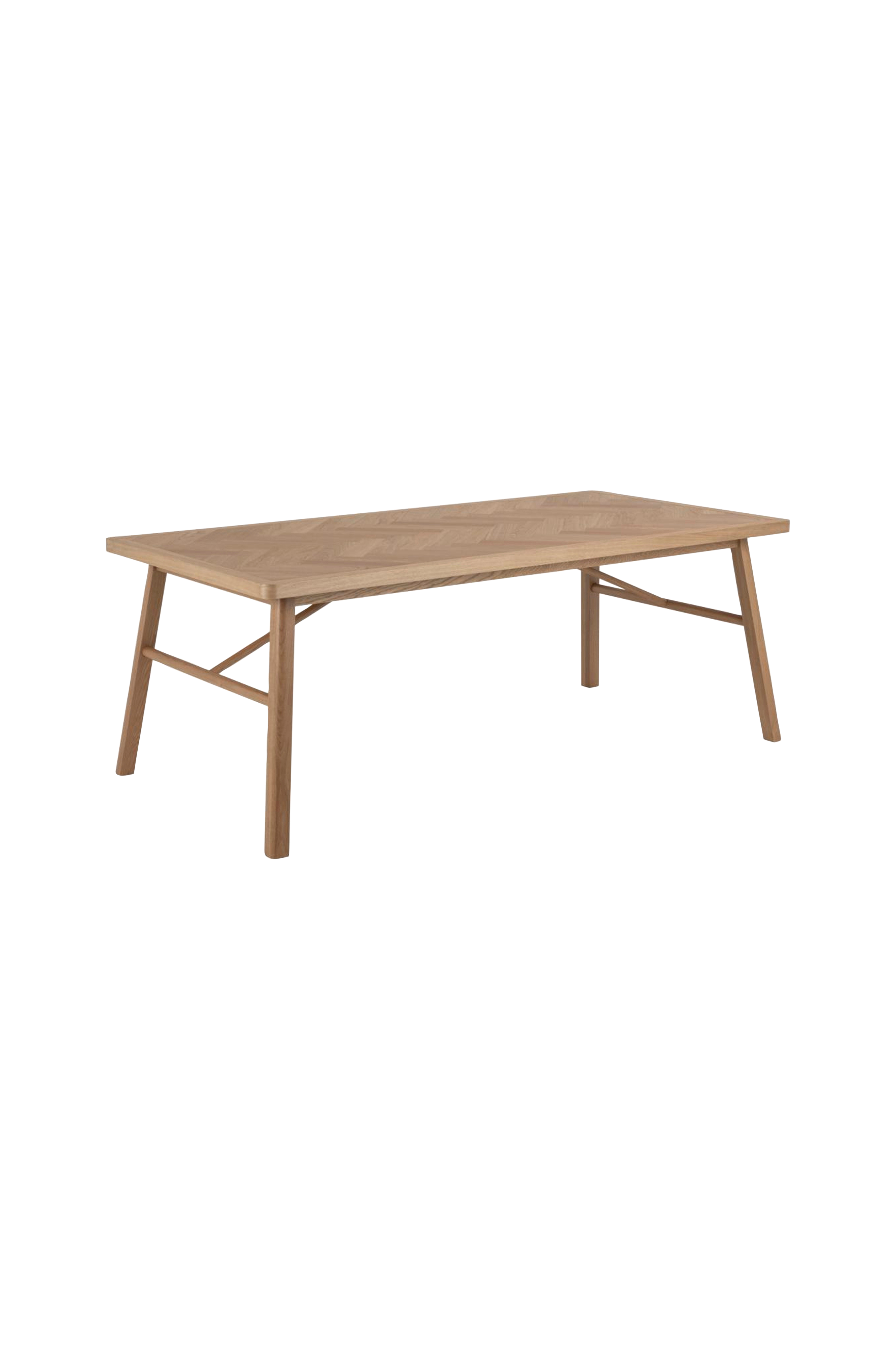Når du kombinerer eik og fiskebensmønster, blir det magi - og dette spisebordet er ikke noe unntak. Med dette bordet med vakker, fiskebensmønstret bordplate kan du nyte måltider i et stilfull miljø. Møbelet er pent, sofistikert og kommer garantert til å gi deg mange komplimenter.