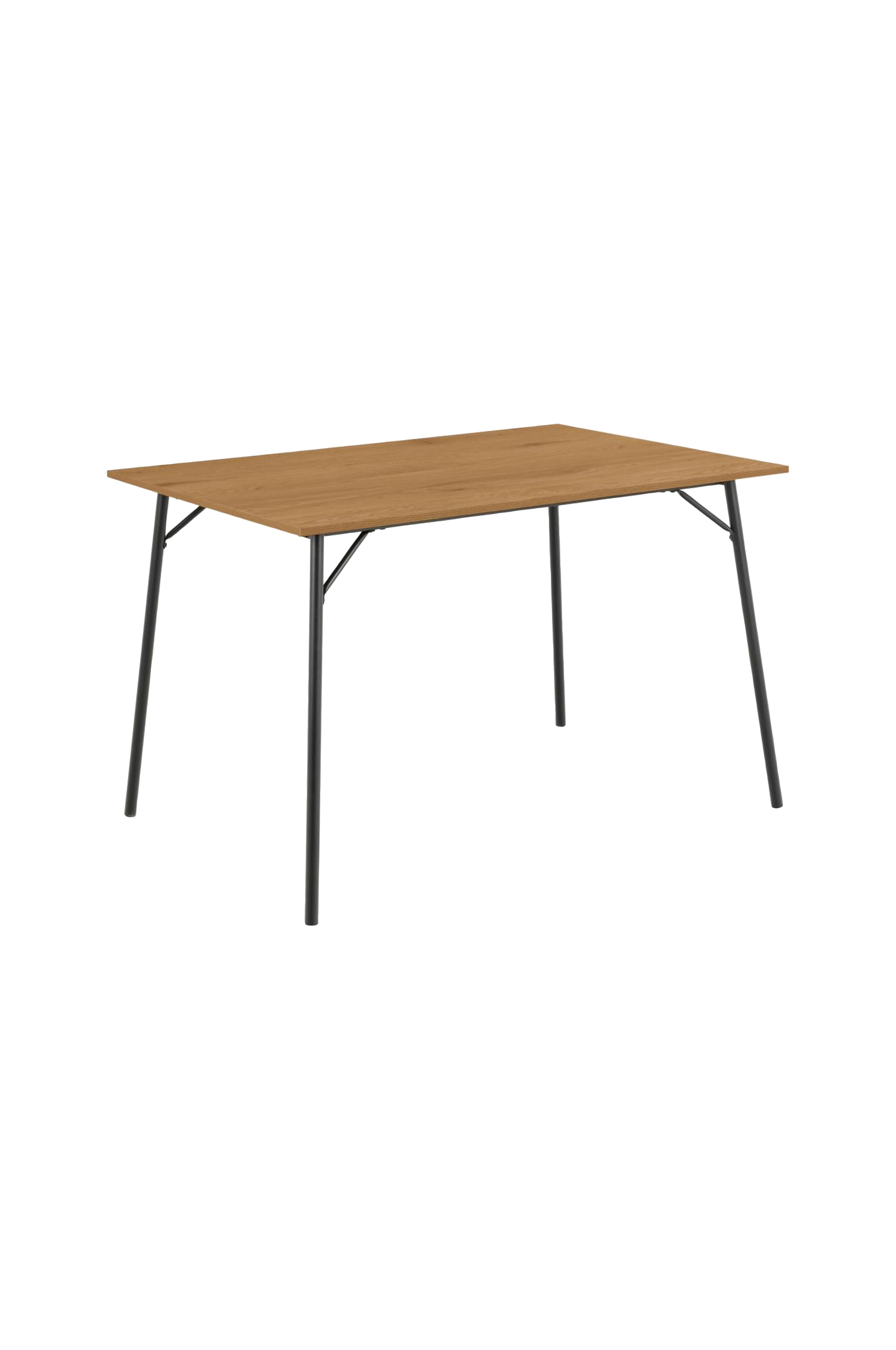Med sine rene linjer og blandede materialer er dette det ideelle spisebordet for både moderne og tradisjonelle rom. Den rektangulære bordplaten i eikelook hviler på slanke sorte metallben, og denne kombinasjonen gir et moderne spisebord med et rustikt preg.