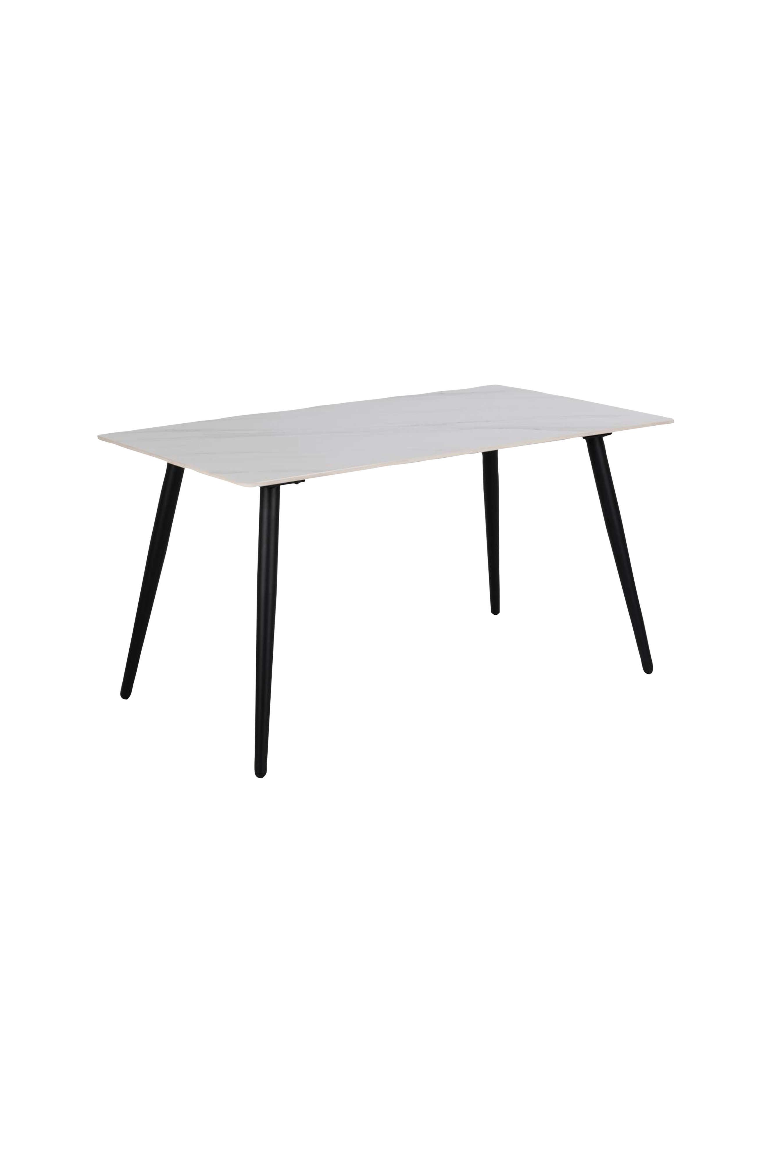 Vil du gi spisegruppen mer karakter? Moderne spisebord i strømlinjeformet, moderne design, produsert av slitesterke materialer. Bordplaten er produsert av matt, svart keramikk med vakkert marmortrykk. Møbelet er både pent og praktisk ettersom den keramiske bordplaten er varme- og ripebestandig, og krever minimalt vedlikehold. Svarte ben av metall kompletterer den fantastiske bordplaten.