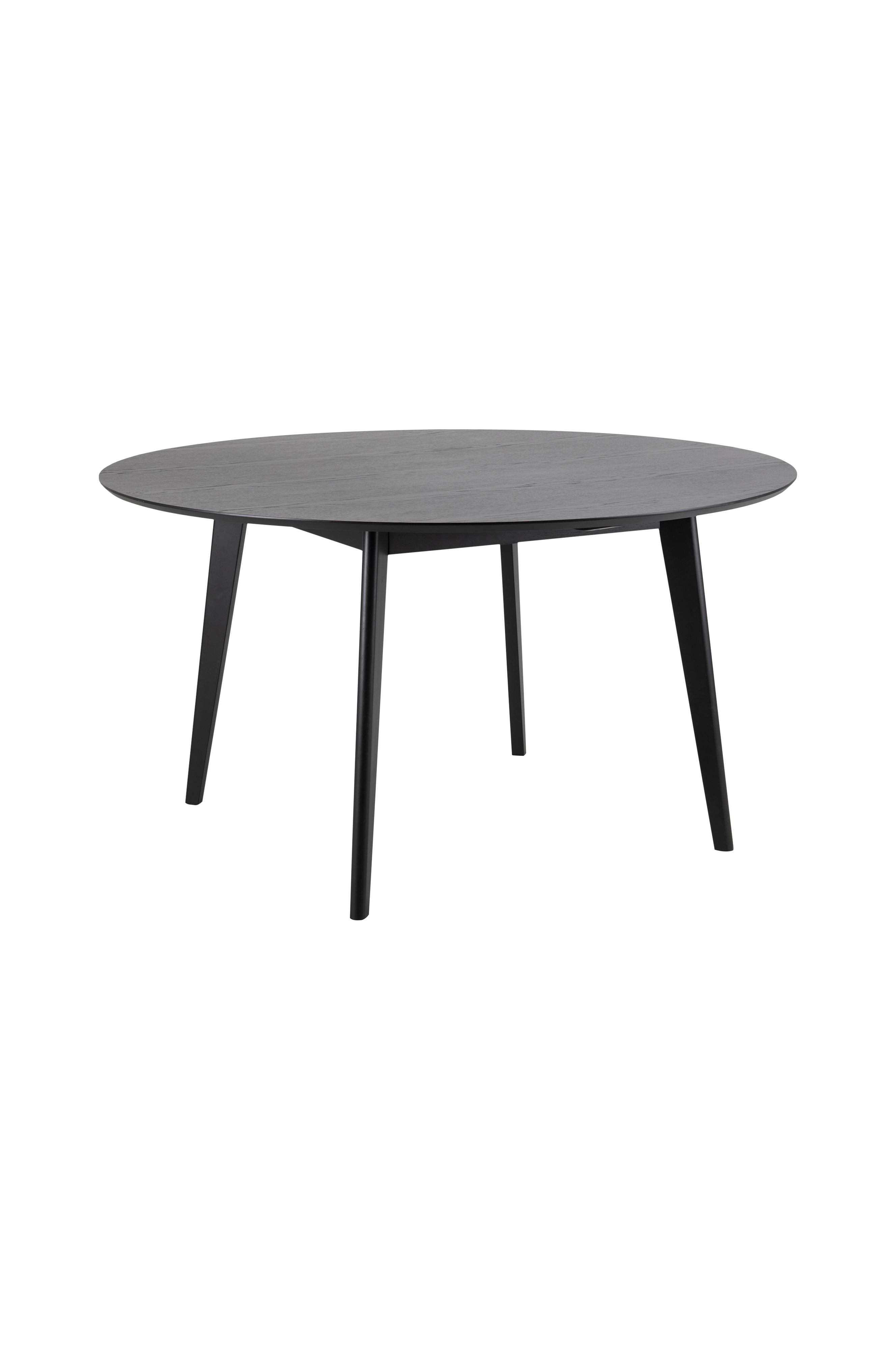 Matbord Roxy med ekfanerad MDF skiva. Ben av gummiträ. Mått; diameter 140 cm, höjd 76 cm. Levereras omonterat.