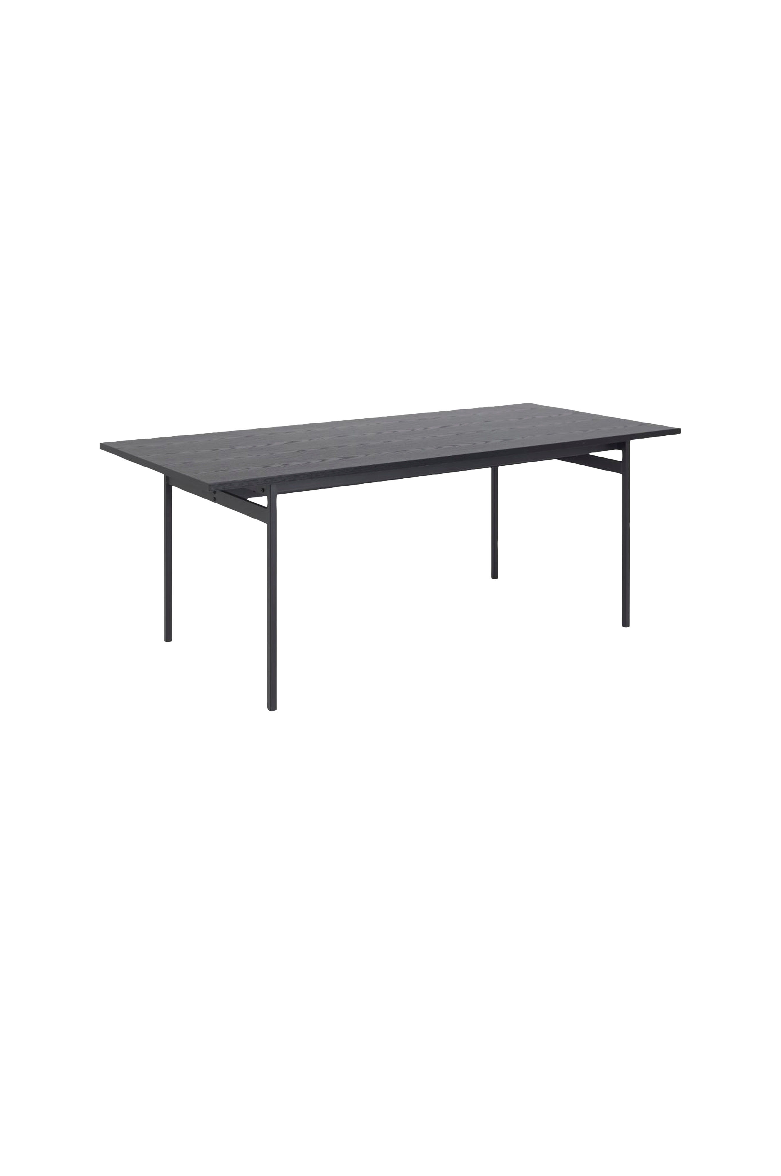 Spisebord med rene linjer og lett tekstur, et kult, moderne tilskudd til enhver stue. Pulverlakkerte metallben og svart bordplate av ask. La det moderne spisebordet stå i sentrum av spisegruppen.