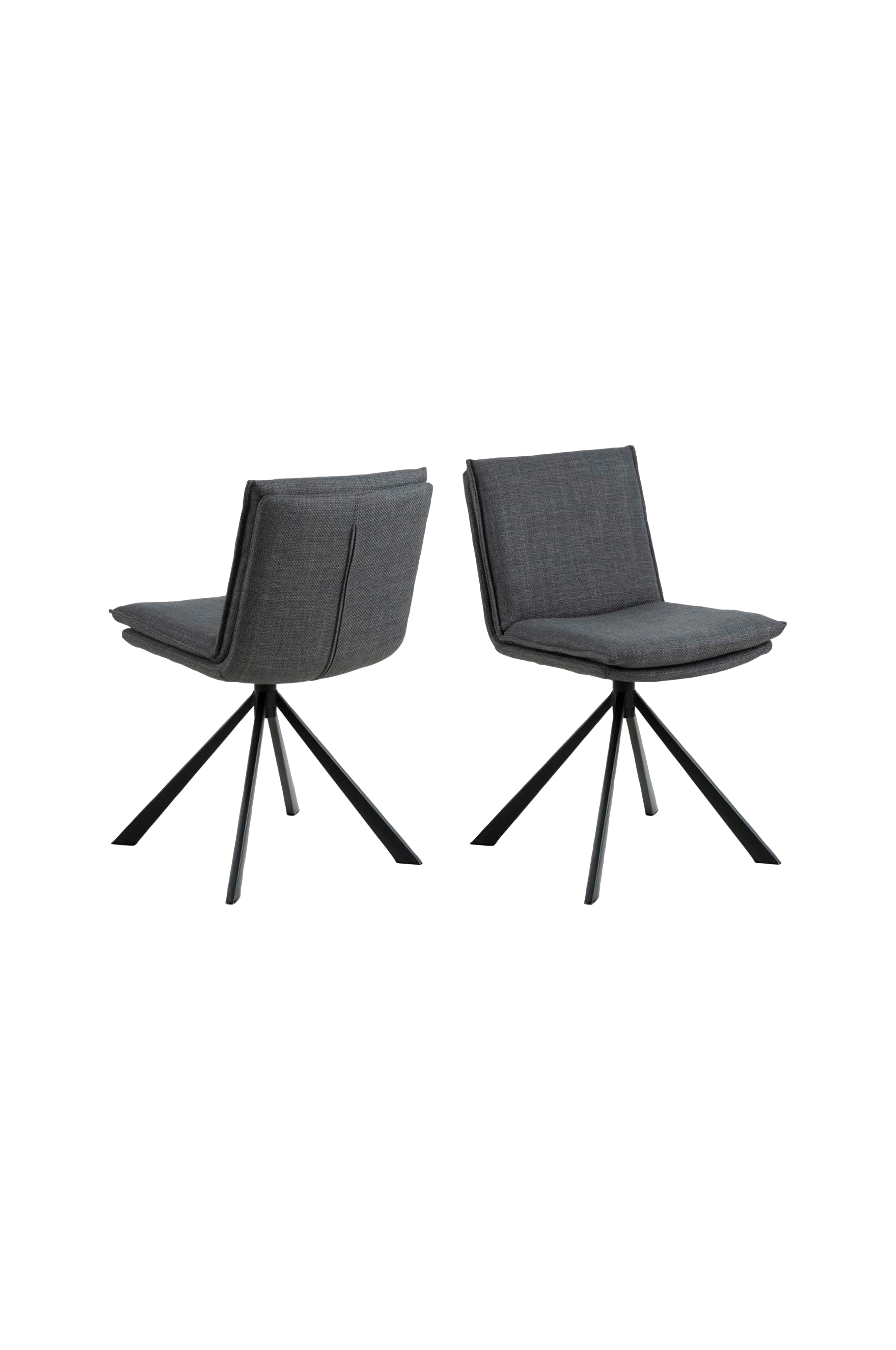 Gi spisestuen personlighet - denne stolen har mye å by på. Stolen er trukket i et beige stoff med tofarget effekt, og setet har en særegen struktur med en pute på toppen som ser ut til å være løs, men som ikke er det. For en kul detalj. Det moderne uttrykket understrekes ytterligere av det 4-stjerners svarte metallunderstellet med dreiefunksjon.