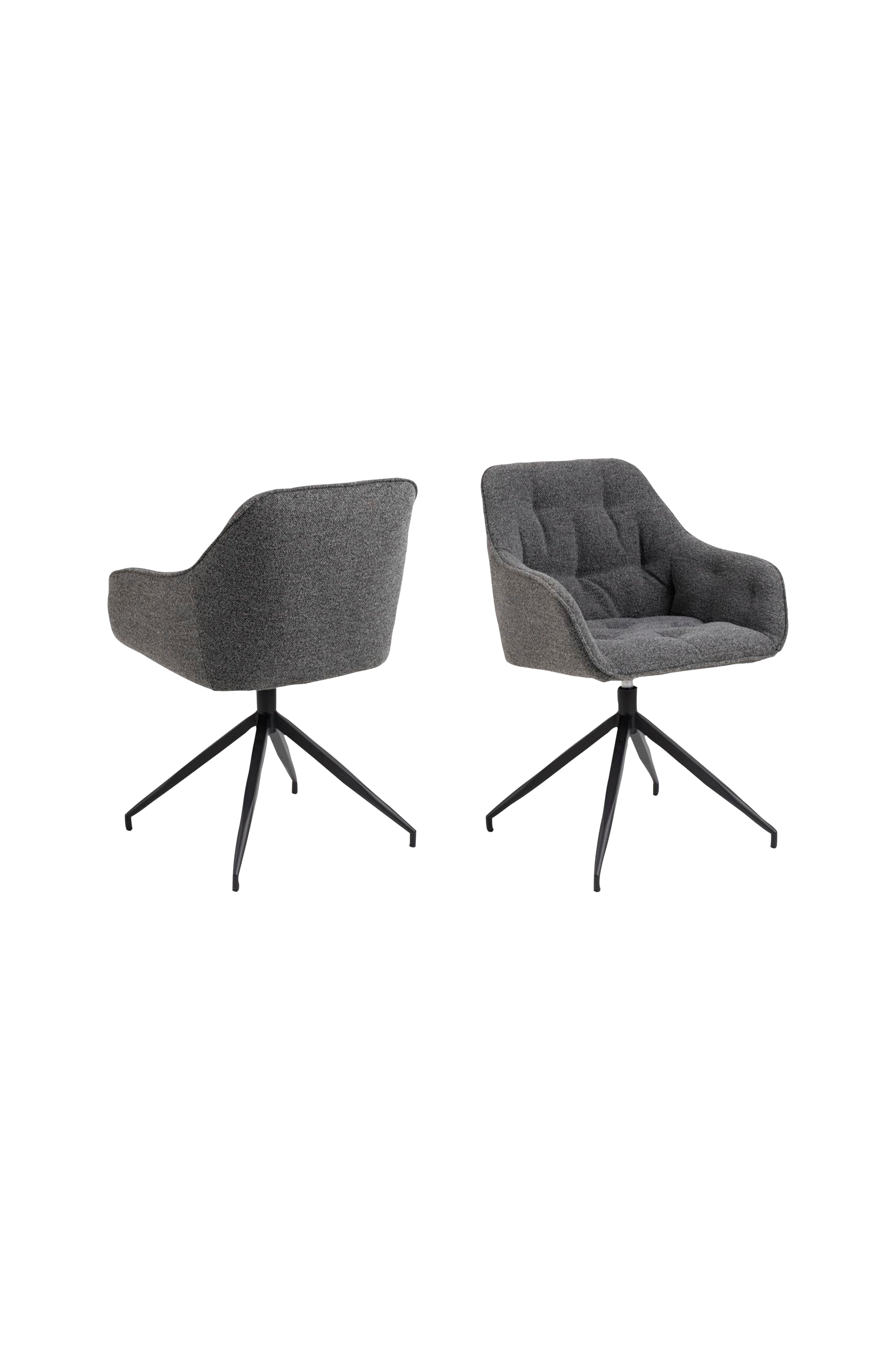 Fremhev spiseplassens karakter med denne beige spisestolen med armlener. Det dominerende elementet i denne stolen er den rene silhuetten. Setet er trukket med boucléstoff og er både behagelig å sitte i og se på. Ved å legge til tuftingdetaljer får stolen et strukturert utseende. For å fullføre det elegante setet står stolen på et svart 4-stjerners dreiefot i stål.