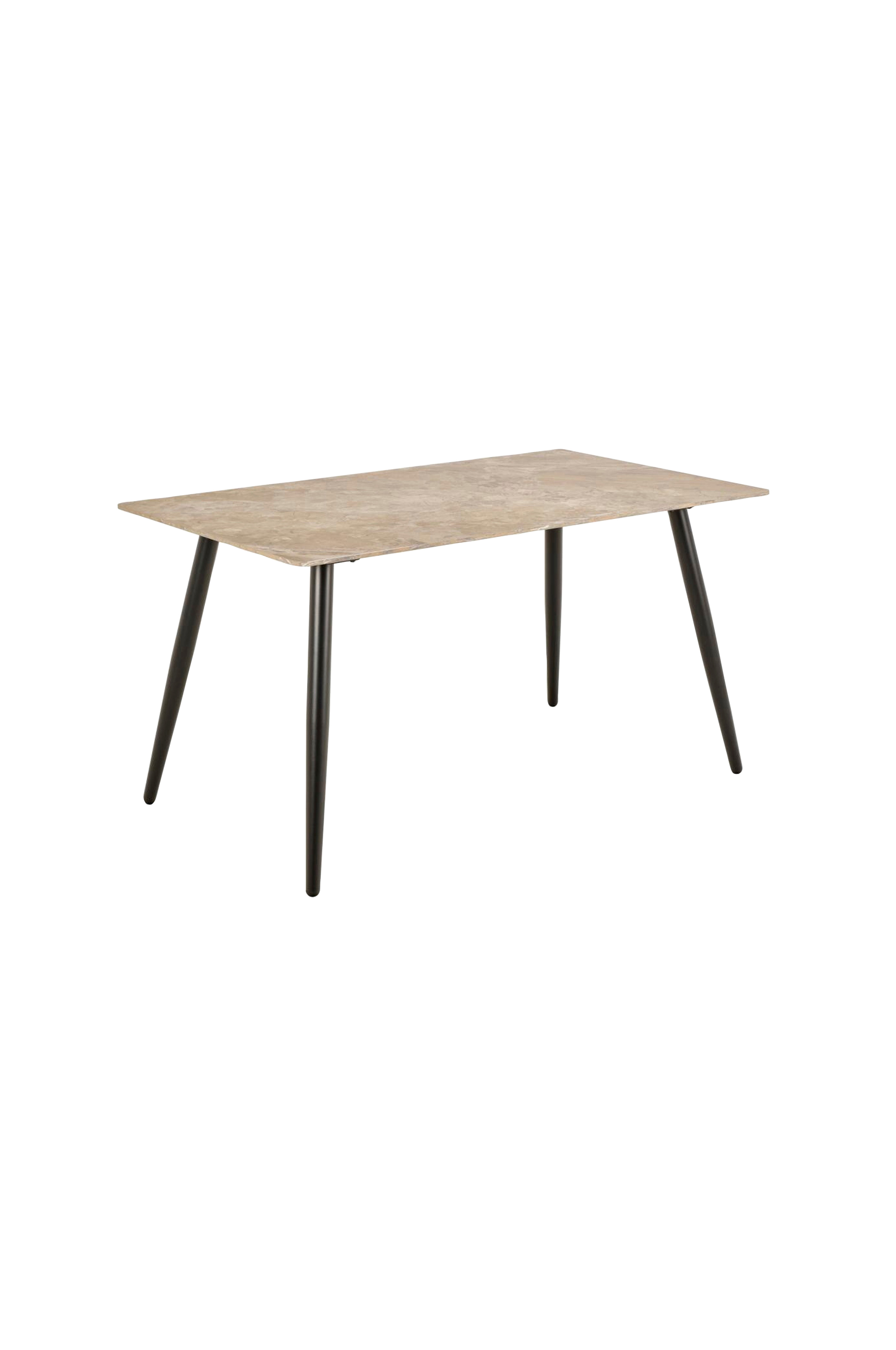 Dette minimalistiske spisebordet er designet med slitesterke materialer, noe som gjør det ideelt for hverdagsbruk. Den rektangulære bordplaten er laget av keramikk, et materiale som er kjent for sine varme- og ripebestandige egenskaper. For å oppnå et balansert utseende er det komplettert med koniske stålben. Det har plass til 4 personer.