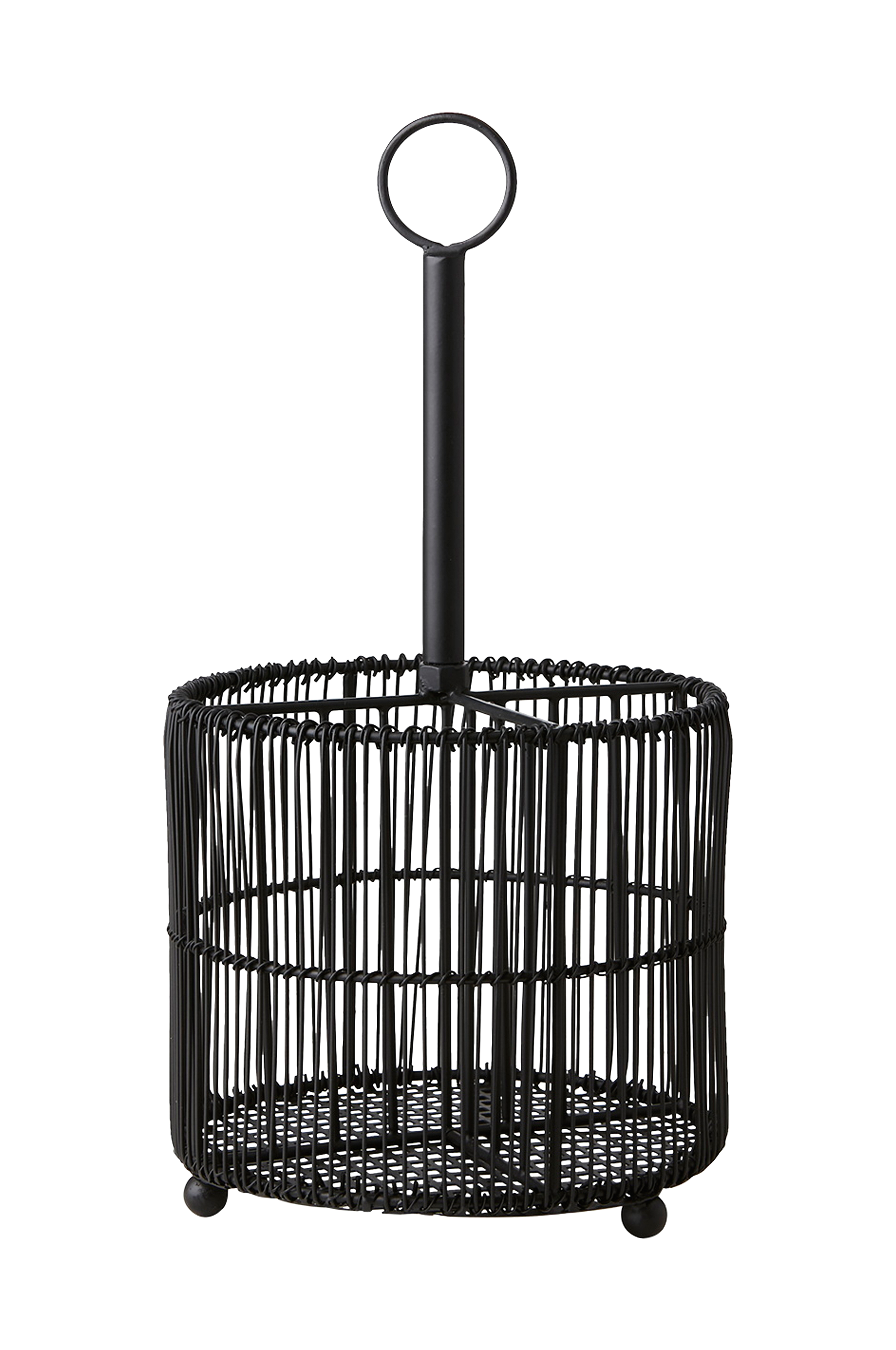 Bestikkstativ i jern med fire etuier som gjør det enkelt å holde orden på bestikket.