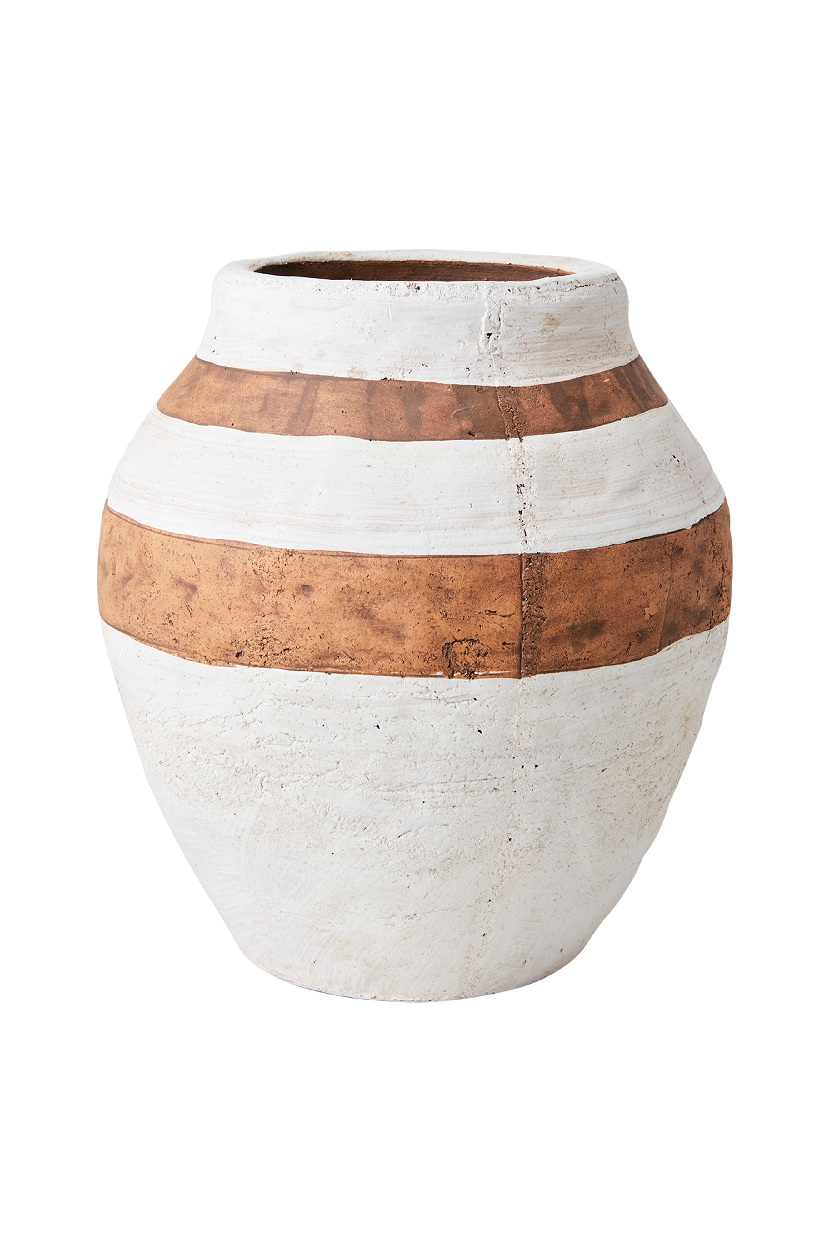 Krukke i terrakotta og hvite striper. Innvendige mål 10 cm