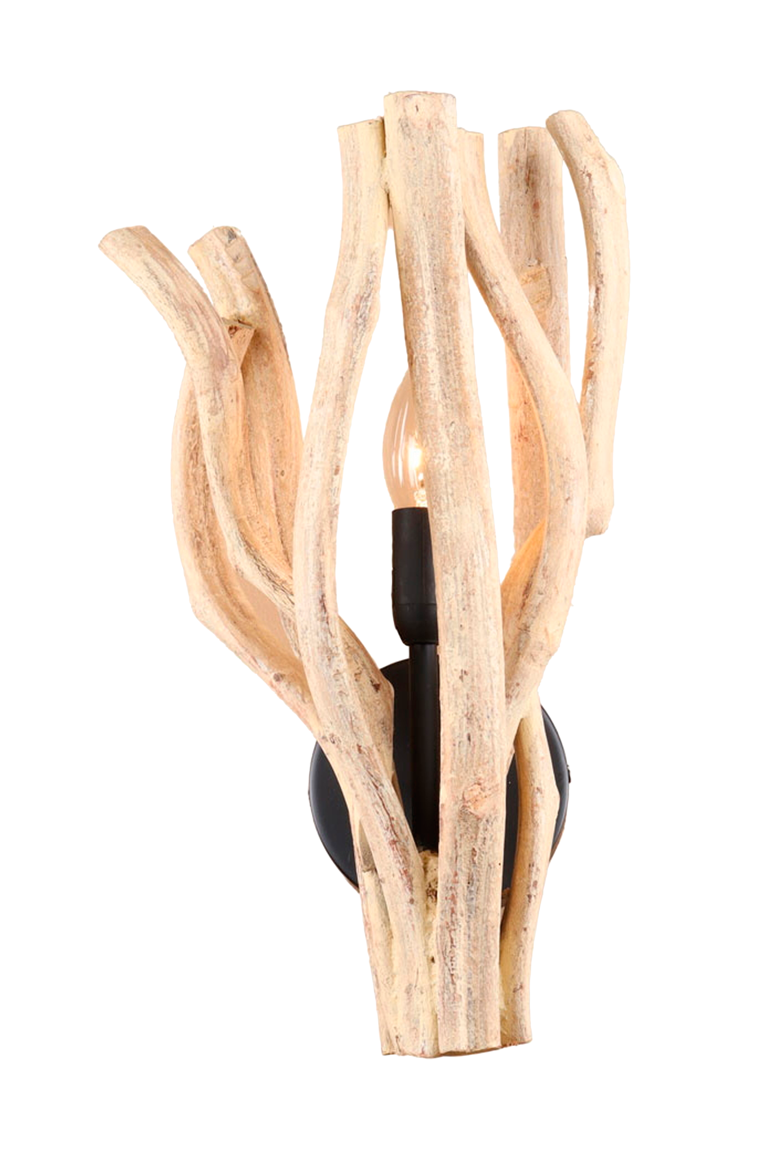 Elfenbensfarget lampett av liane med svart veggkopp. Lampetten er 40 cm høy, 30 cm bred og 30 cm dyp. Ledningslengde ca. 190 cm. Liten sokkel E14 og maks 40 watt.