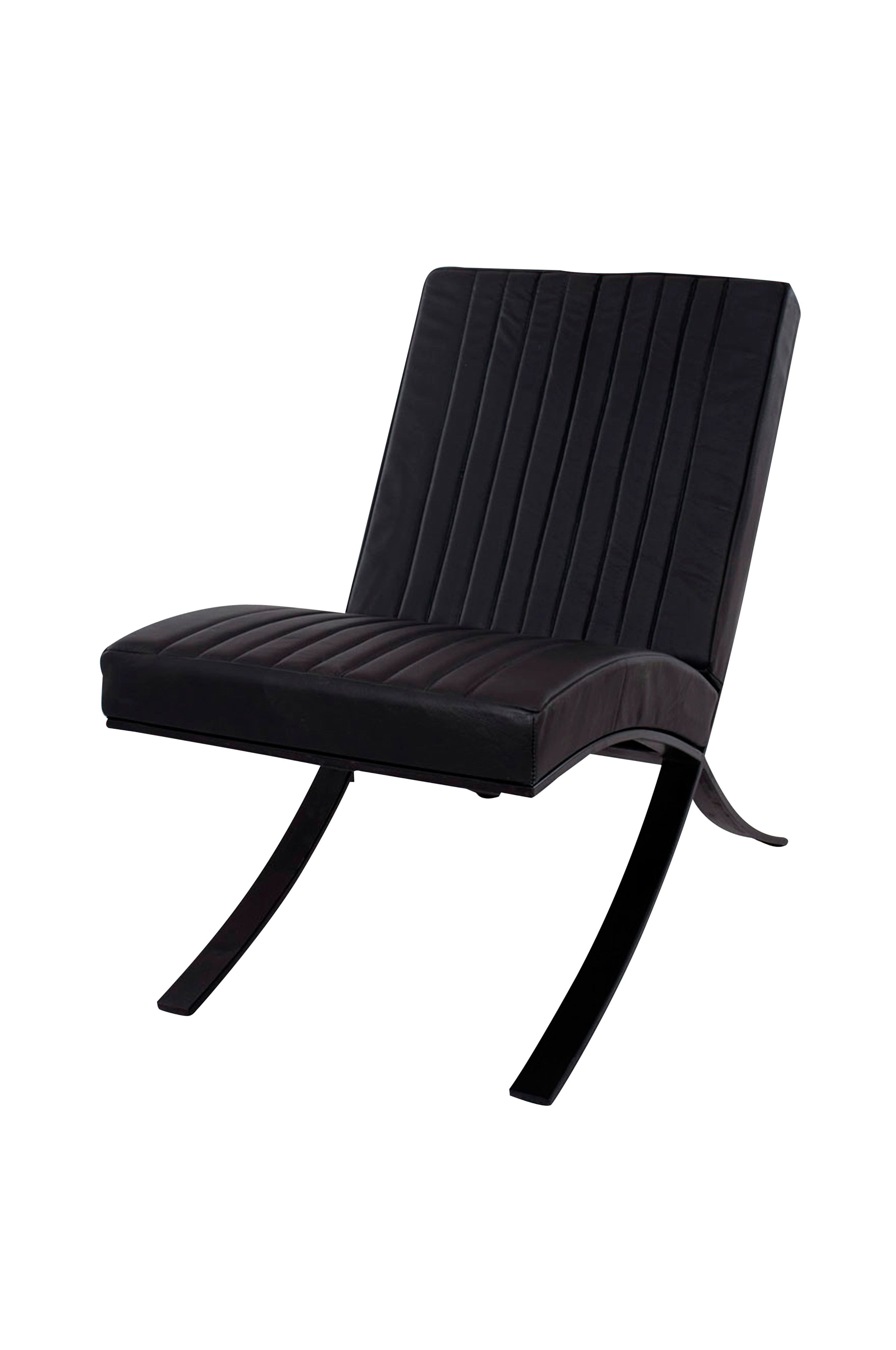 Lenestol Kyvik i svart skinn med svart jernstamme og ben. Leveres montert.