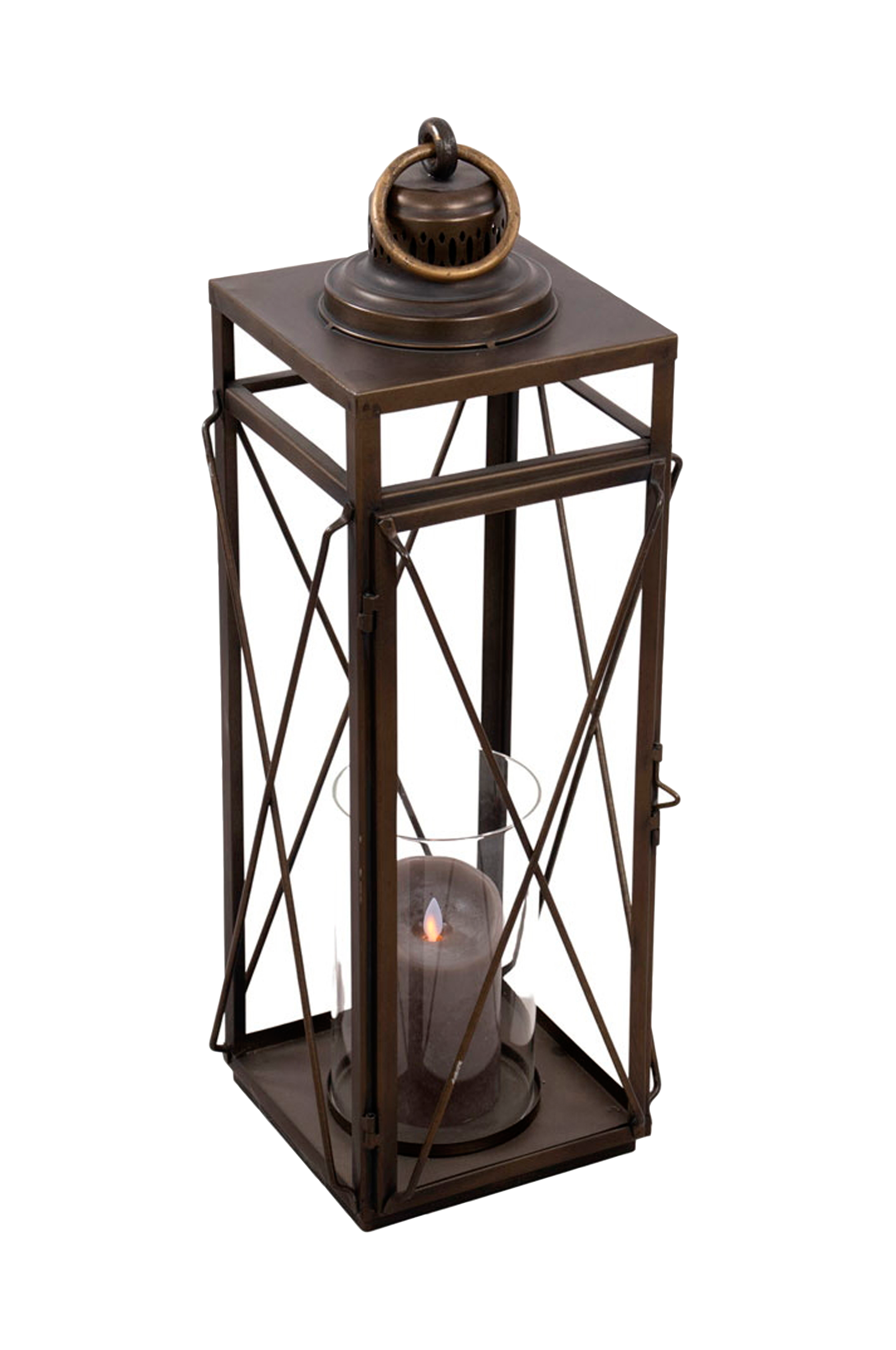 Utforsk den tidløse skjønnheten i denne bronsesjatterte lykten av metall og glass, et mesterverk av design og håndverk. Med en høyde på 62 cm og mål på 23 cm i bredde og dybde, er lykten mer enn bare en dekor, den er et imponerende kunstverk som kommer til å forgylle atmosfæren i hjemmet med en mystisk og fortryllende glans. Materiale: jern og glass