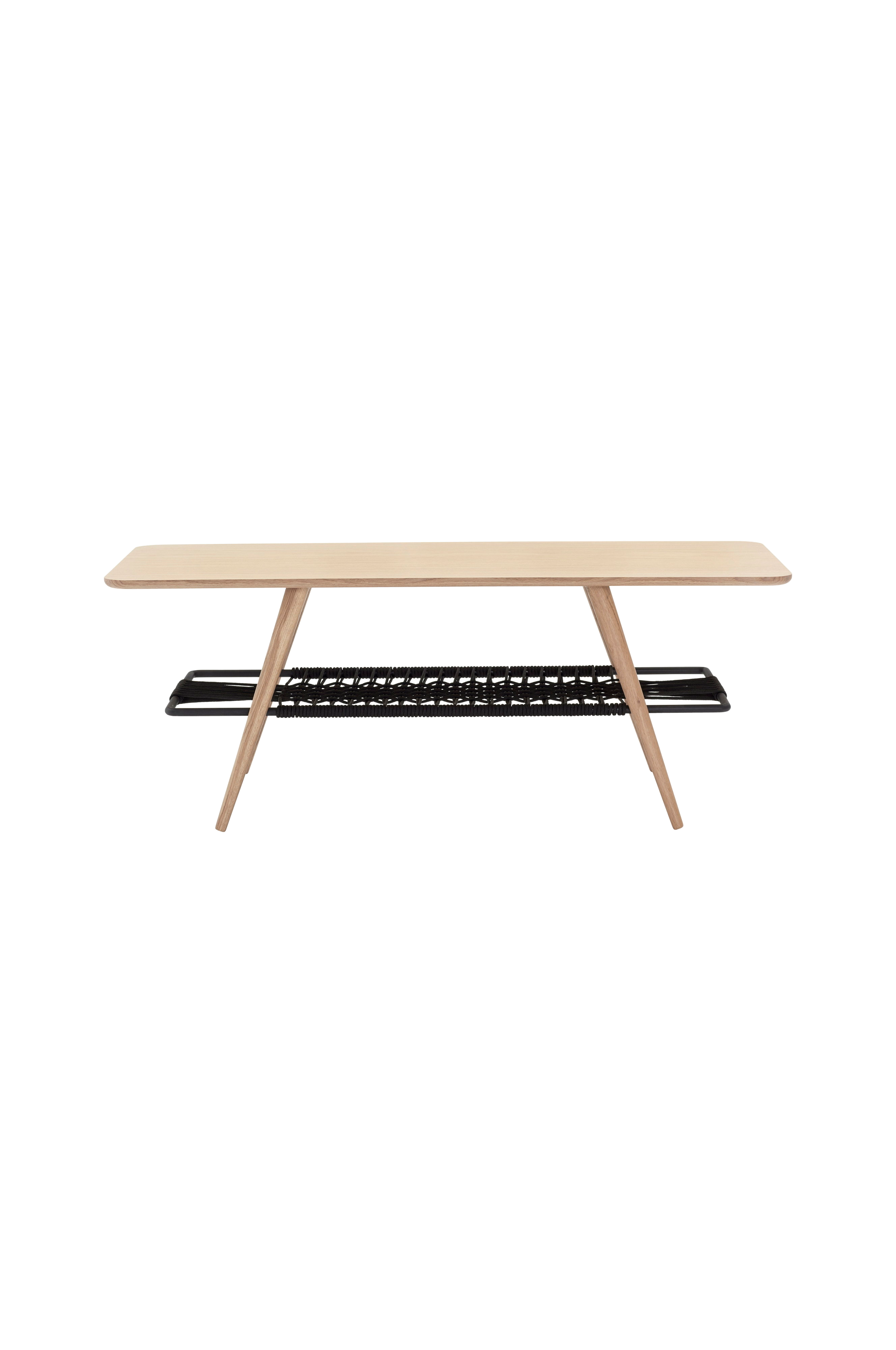 C7-sofabordet fra Andersen Furniture passer perfekt til det moderne hjemmet. Bordet er designet i pigmentert lakkert eikefiner, noe som gir det et vakkert, naturlig utseende. Kombinasjonen av benkeplaten og den flettede hyllen skaper en kontrast som gir en letthet i designet. Hyllen gjør det mulig å oppbevare livsstilsmagasiner eller fjernkontrollen.