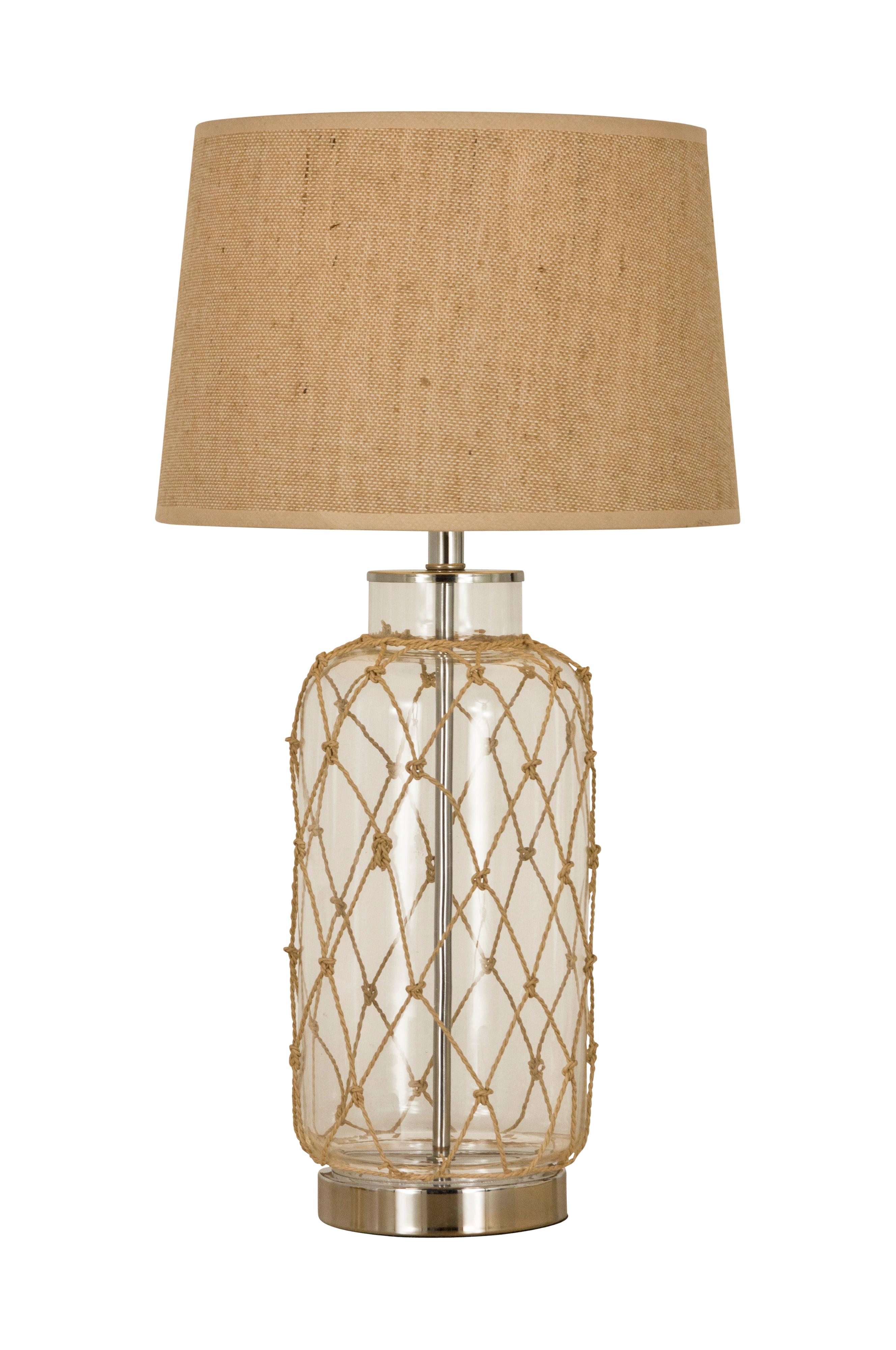 MARINE bordlampe. Lampen leveres med skjerm. Strømbryter på ledningen. Materiale: glass og tekstil