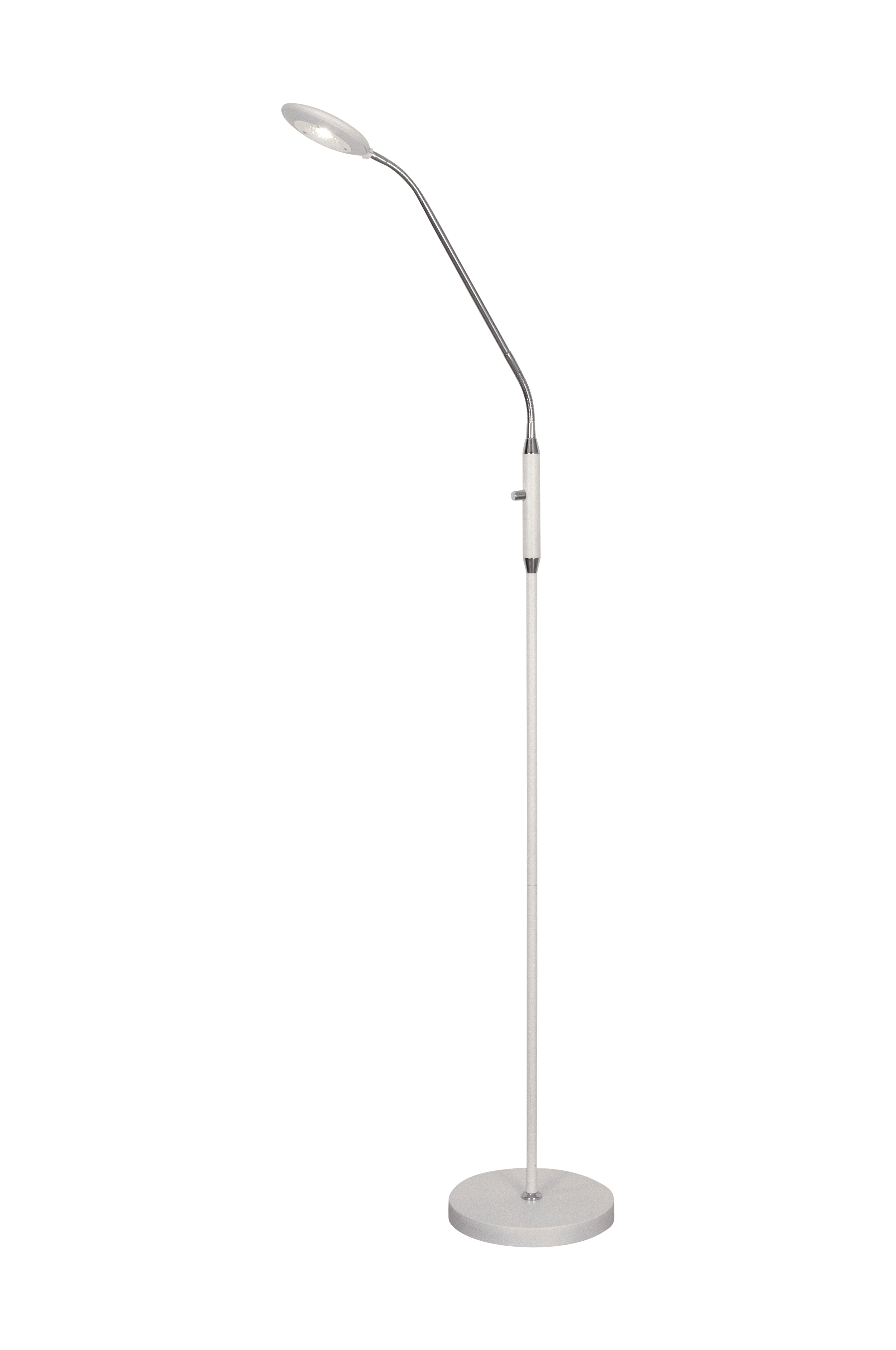 MOTO gulvlampe. Lysmengde 530 lm, levetid LED 30 000h, varmt hvitt lys 3000 K. Dimmerbryter på stangen. Justerbart hode. Materiale: metall