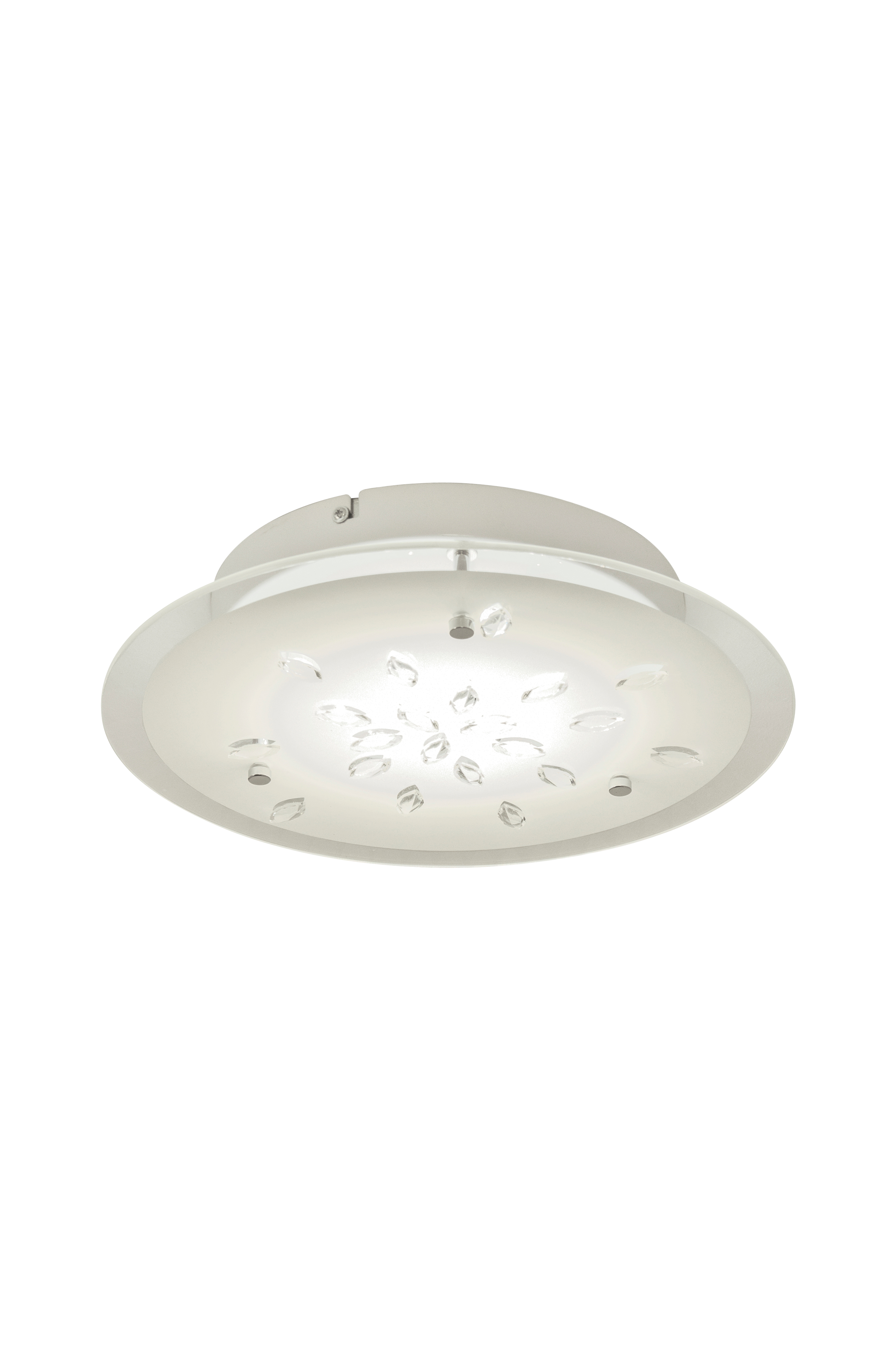 Lara plafond LED i fargen hvit/klar. Lampens hovedmateriale er glass/metall. Lyspære med 12W maks wattstyrke. Lyspærer inkludert. Lyspærens lysstyrke er 900 lumen med 3000 kelvin fargetemperatur som tilsvarer varmhvitt lys. Forventet levetid på LED fra 100% til 70% lyseffekt er 30 000 timer. LED-pæren kan ikke skiftes ut. Lyskilden kan ikke dimmes. Lampen monteres på bøyleoppheng. Strømtilkobling med fast montering. IP-klassifisering IP20