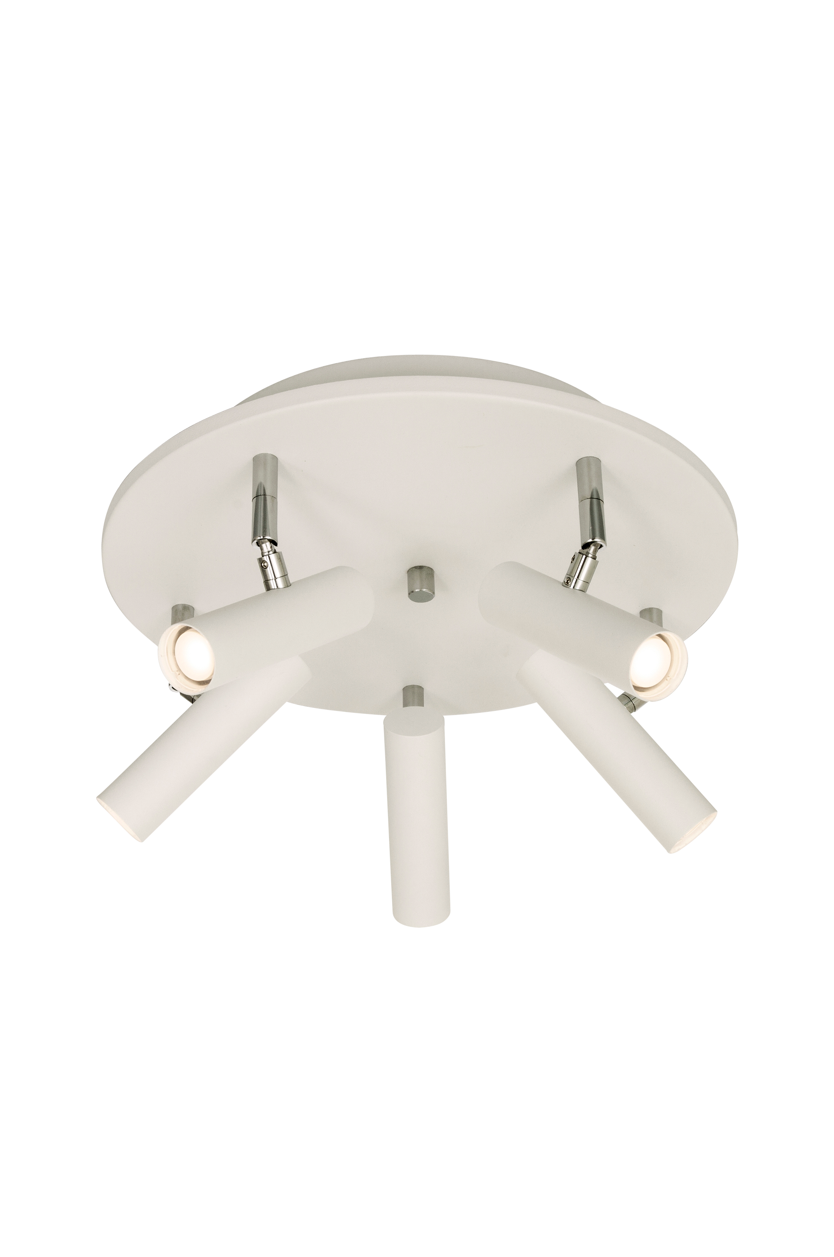 Artic spotlight LED i fargen hvit/krom. Lampens hovedmateriale er metall. Lyspære med 5 + 6W maks wattstyrke. Lyspærer inkludert. Lyspærens lysstyrke er 5 x 540 lumen med 3000 kelvin fargetemperatur som tilsvarer varmhvitt lys. Forventet levetid på LED fra 100% til 70% lyseffekt er 50 000 timer. LED-pæren kan ikke skiftes ut. Lyskilden kan dimmes. Lampen monteres på krokoppheng. Strømtilkobling med koblingssplint, stikkontakt kan monteres. IP-klassifisering IP20