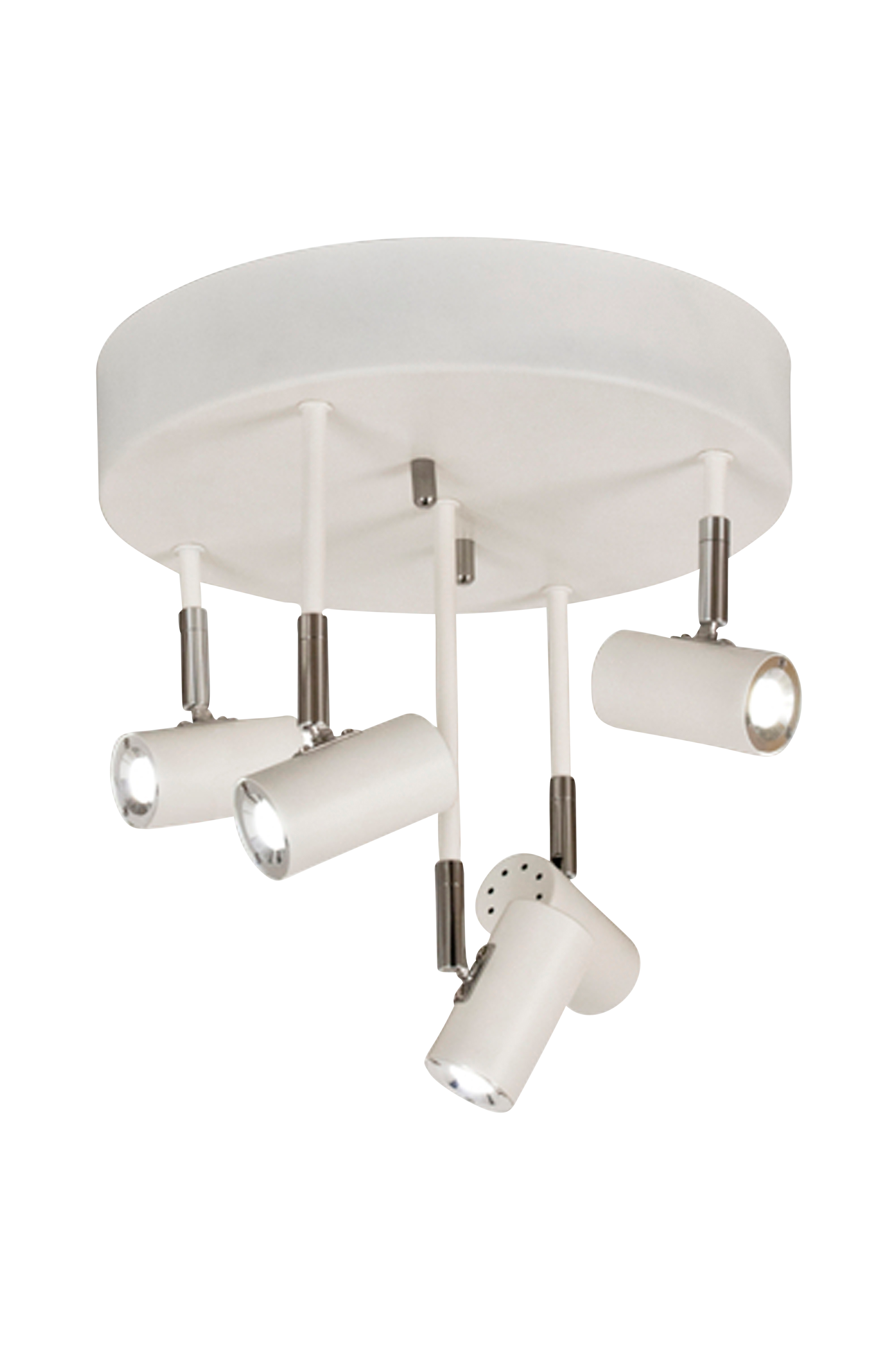 GUSTO takspot, rondell, 5 lys. Lampen monteres i taket med krokoppheng. Strømtilkobling med lampestøpsel/koblingssplint.