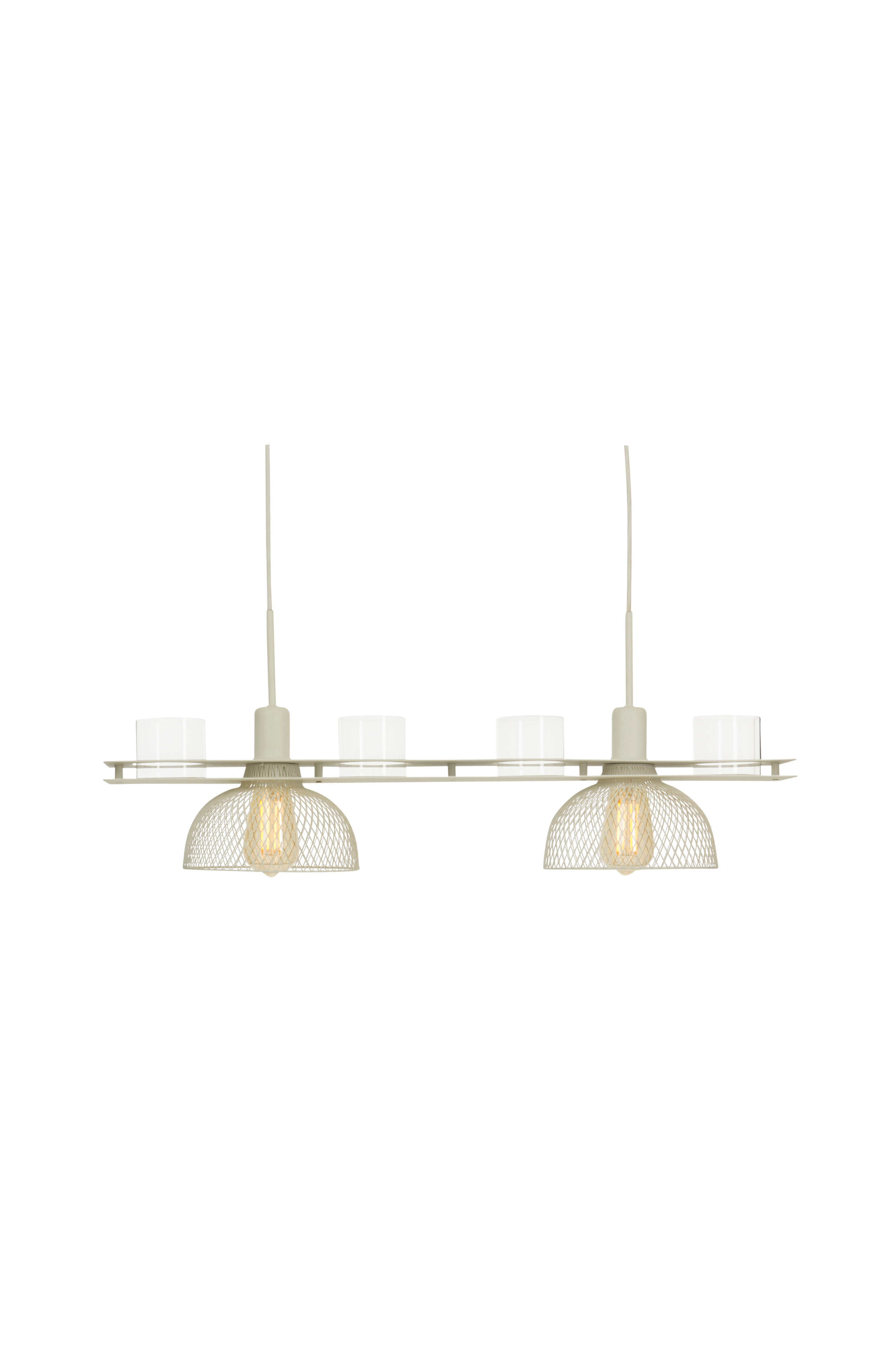 Taklampe TIMJAN passer perfekt over spisebordet på kjøkkenet. Lampen har glasskåler der du kan få te-lamper eller blomster