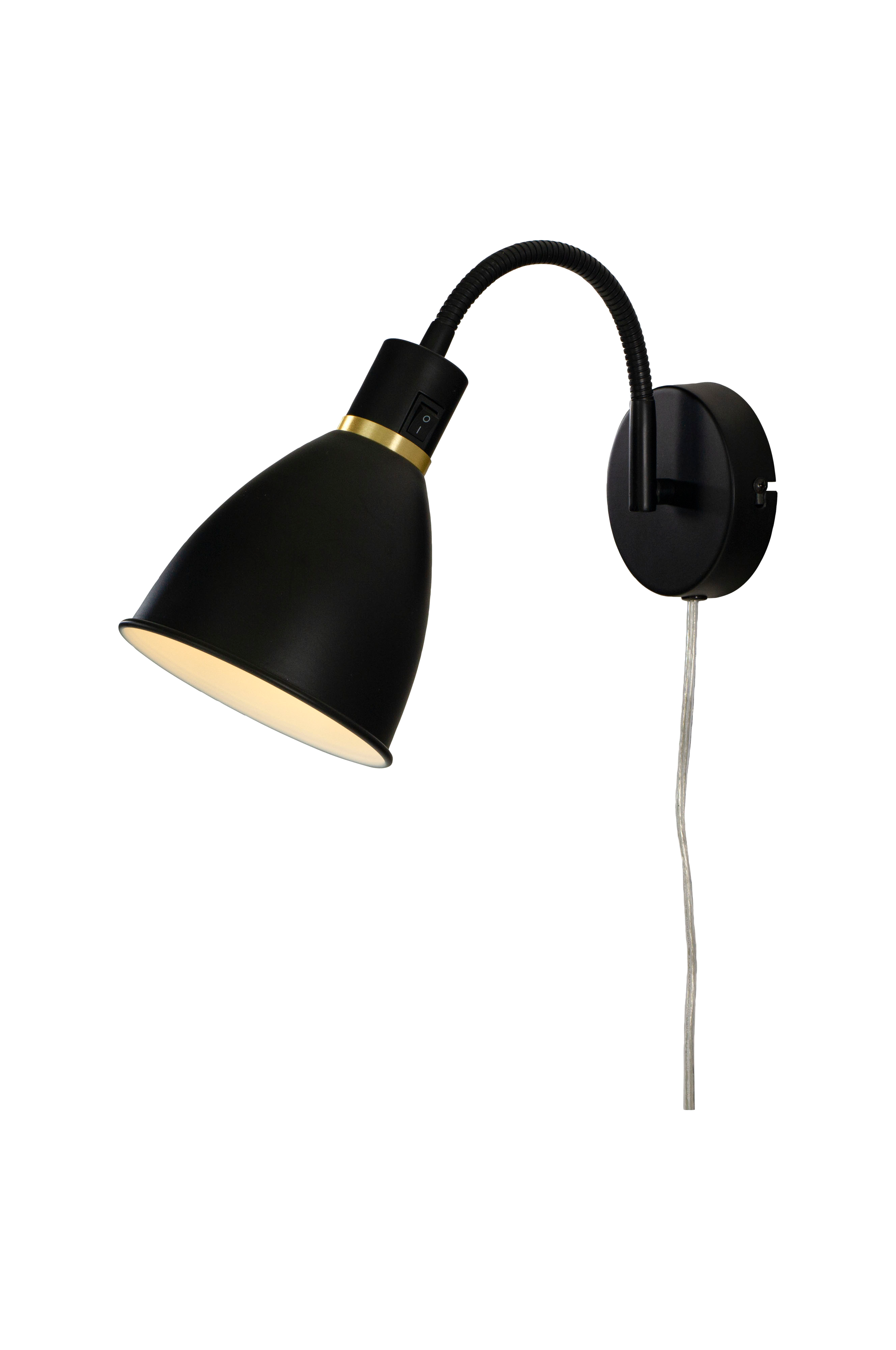 Idre vegglampe har en klassisk design i svartlakkert metall med en dekorativ ring i matt messing. Lampen har en bøyelig arm, og strømbryteren sitter lett tilgjengelig på lampehodet, noe som gjør Idre til en perfekt sengelampe. Idre vegglampe kan også kombineres med andre lamper i Idre-familien.