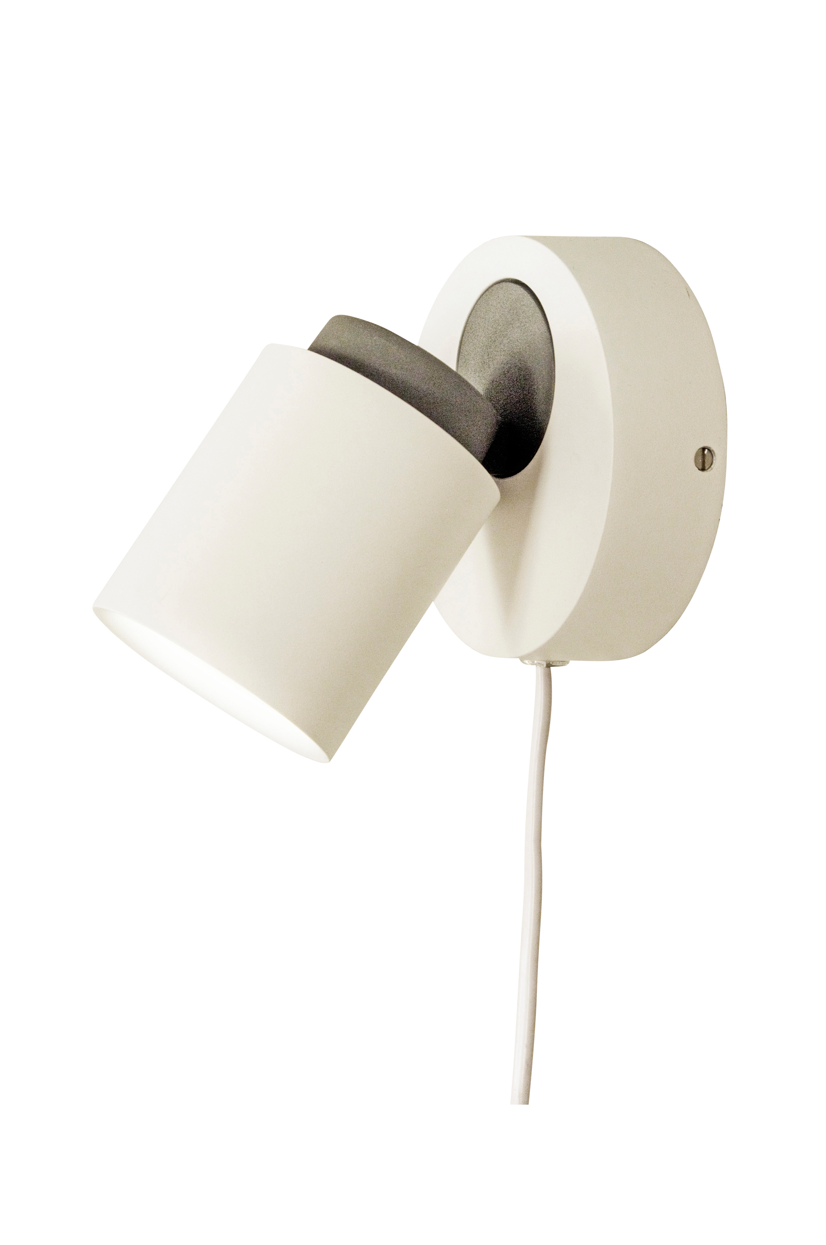 ROLLO vegglampe. Lampehodet kan justeres og strømbryteren er på ledningen. Lyspære er ikke inkludert. Materiale: metall