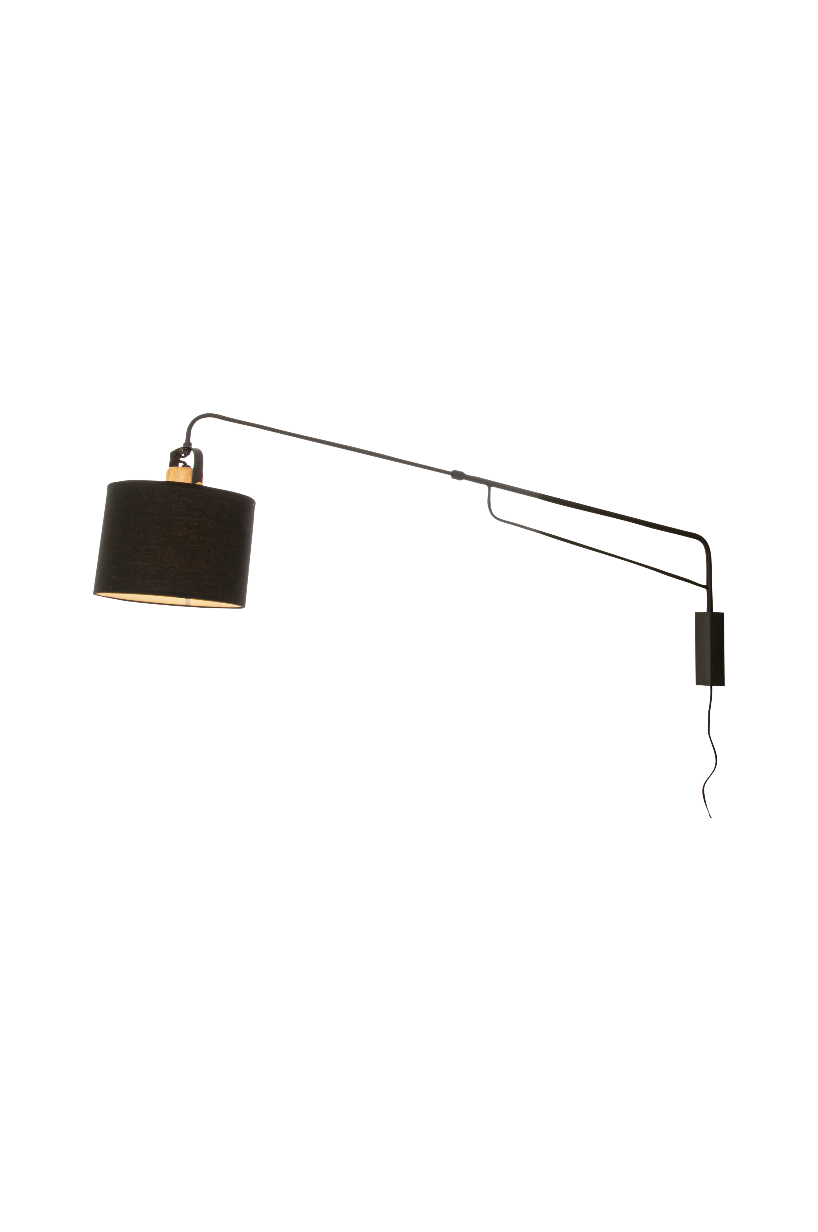 Wally vegglampe i fargen svart/tre. Lampens hovedmateriale er tre/metall/tekstil. E27-sokkel for lyskilde maks 40W. Lyspærer ikke inkludert. Lampen slås på og av med strømbryter på ledningen. Strømtilkobling med stikkontakt. IP-klassifisering IP20