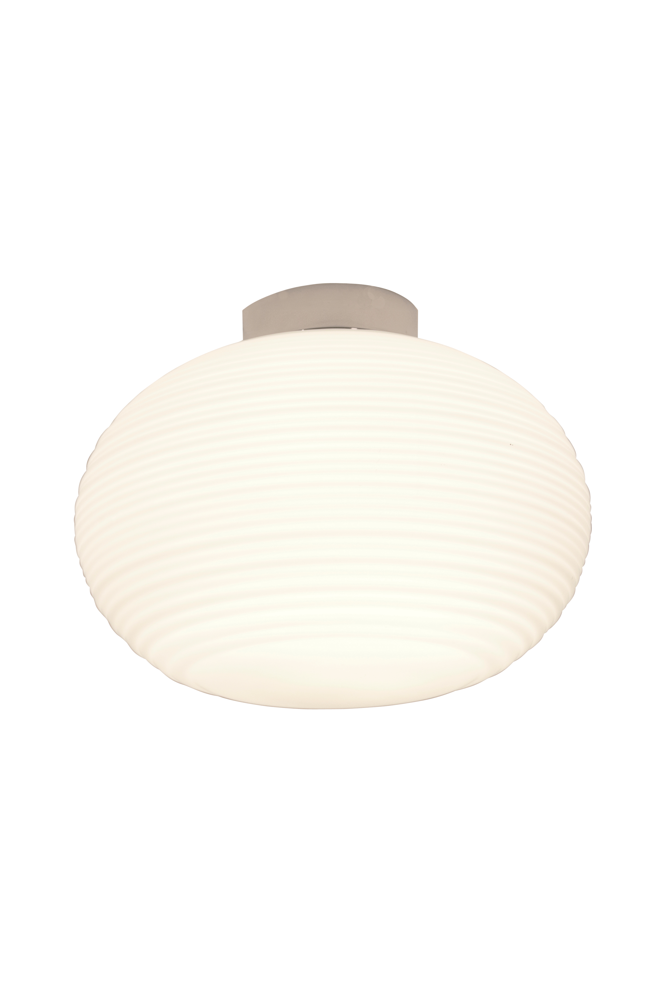 SEFYR plafond. plafondlampe med opalfarget glasskjerm og krokfjæring for enkel plafondmontering. Materiale: metall og glass