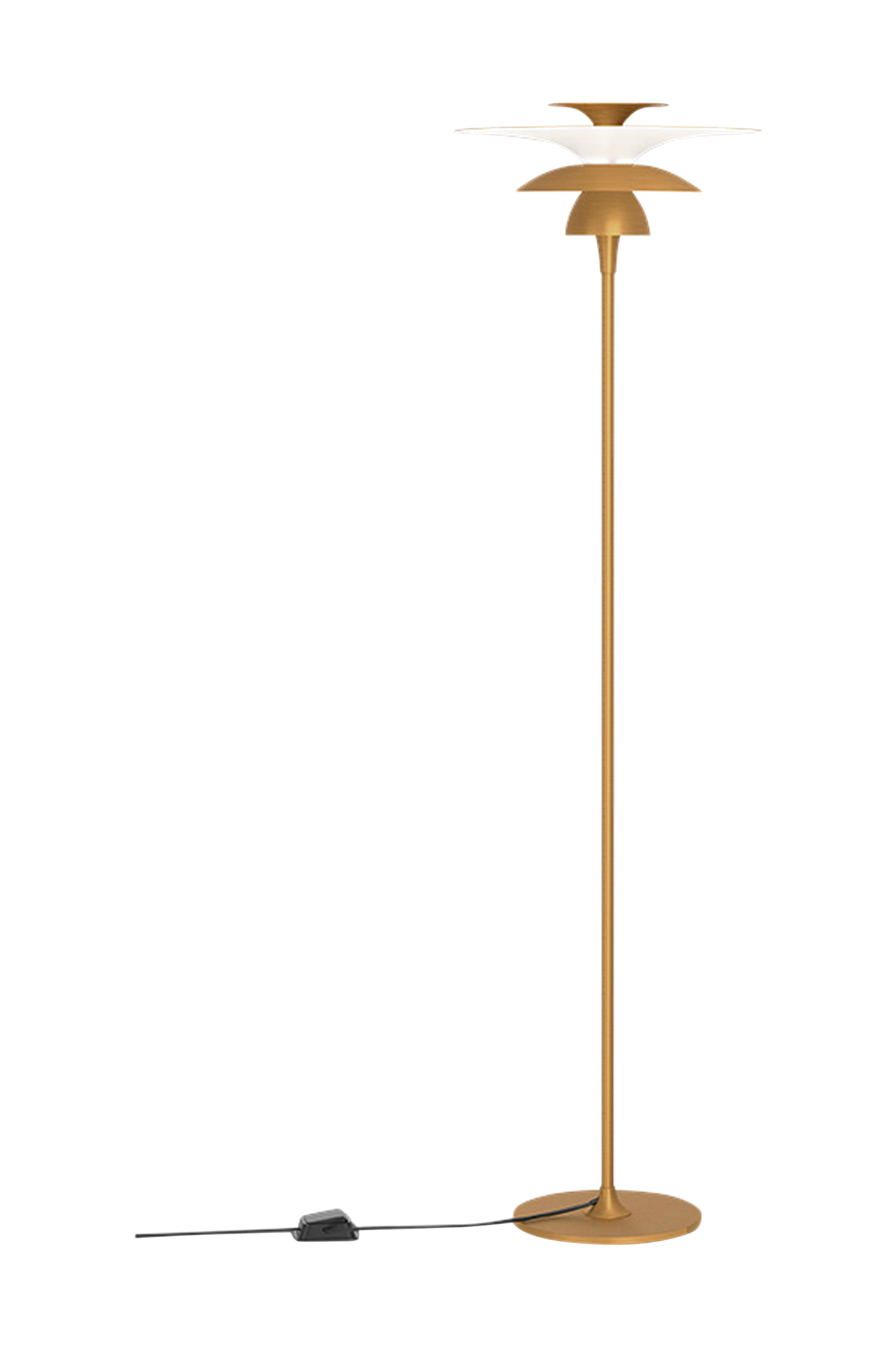 Picasso-familien består av pendler, bord- og gulvlampe. For at gulvlampen skal kunne passe inn i interiøret i flere år, har vi valgt å holde designen enkel og elegant. Picassos metallskjerm i ulike størrelser gir et vakkert lys. Passer i stue og soverom. Lyspære er ikke inkludert. Sokkel G9. 10 watt. IP20. Tekstilkledd ledning, lengde 1,7 m. Bryter på ledningen. Høyde 140,3 cm og diameter 38 cm. Klasse II. Designer Joakim Fihn. Produsert i Varberg, Sverige.