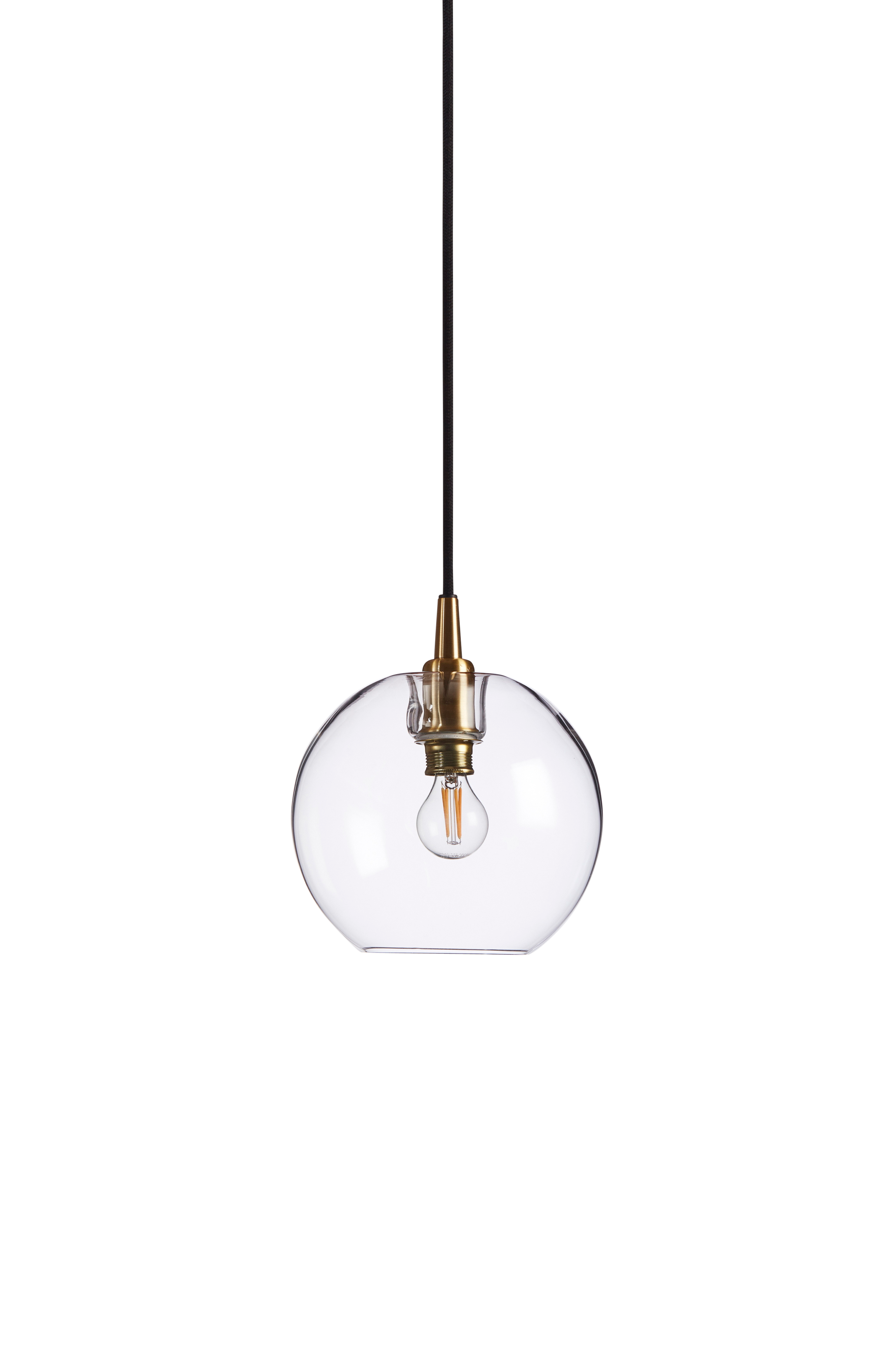 I serien Gloria inngår pendler, lysekrone, plafonder og bordlampe. Gloria er designet for fine filamentpærer, og lyset vises på en vakker og dekorativ måte. Passer i de fleste rom. Lyspære er ikke inkludert. Sokkel e14. 40 watt. Dimbar. Tekstilkledd ledning, lengde 2,8 m. Takkopp medfølger, montering krokoppheng. Høyde glass 17,5 cm og diameter glass 19 cm. IP20. Klasse i. Produsert i Varberg, Sverige.
