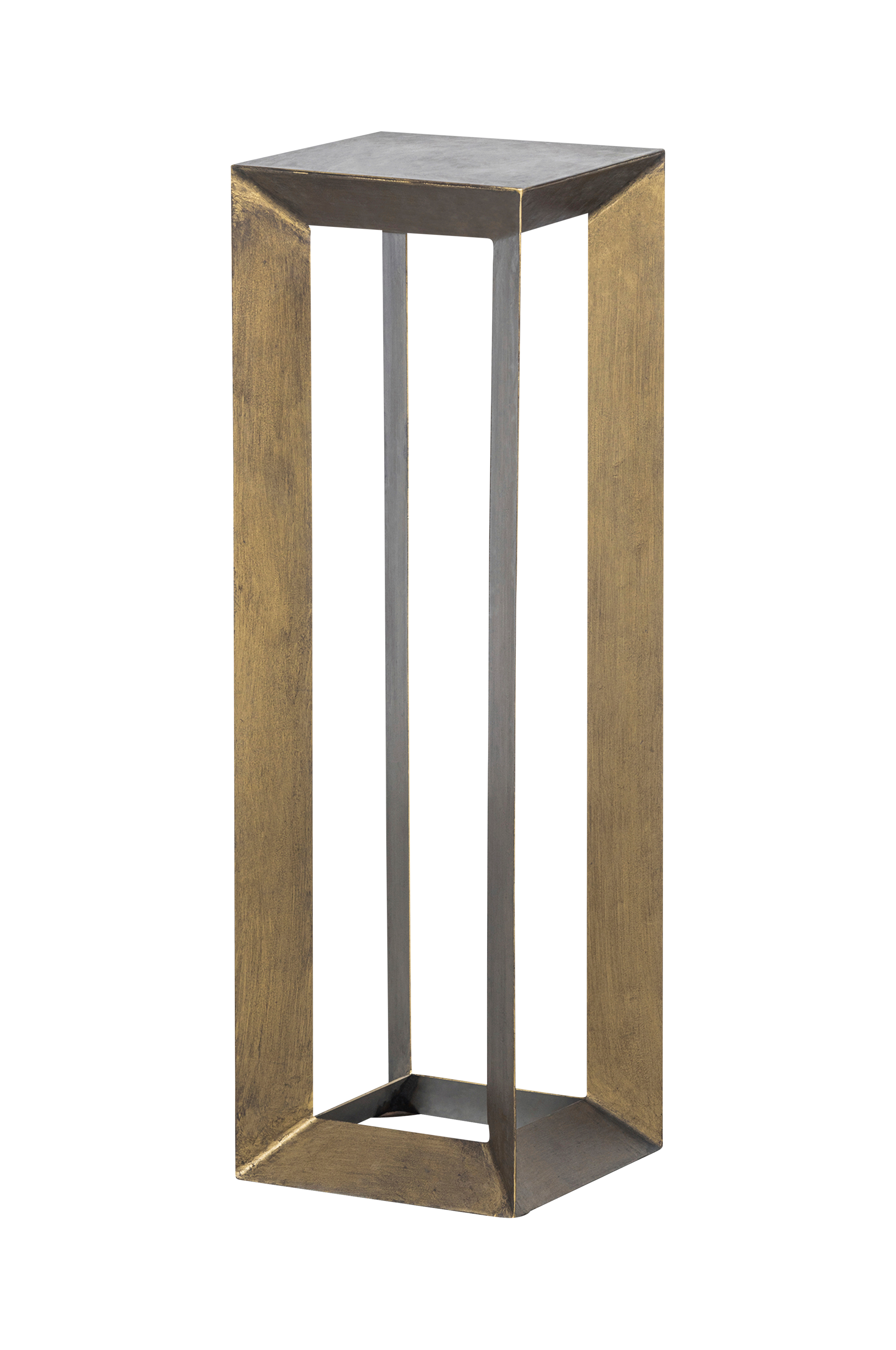 Det antikke messingbelegget har en mystisk, matt glans som aldri slutter å forbause. Den smale pidestallen inngår i kolleksjonen fra BePureHome. Plain har en enkel og robust design, men ser svært elegant ut på grunn av den matte gullfargen.