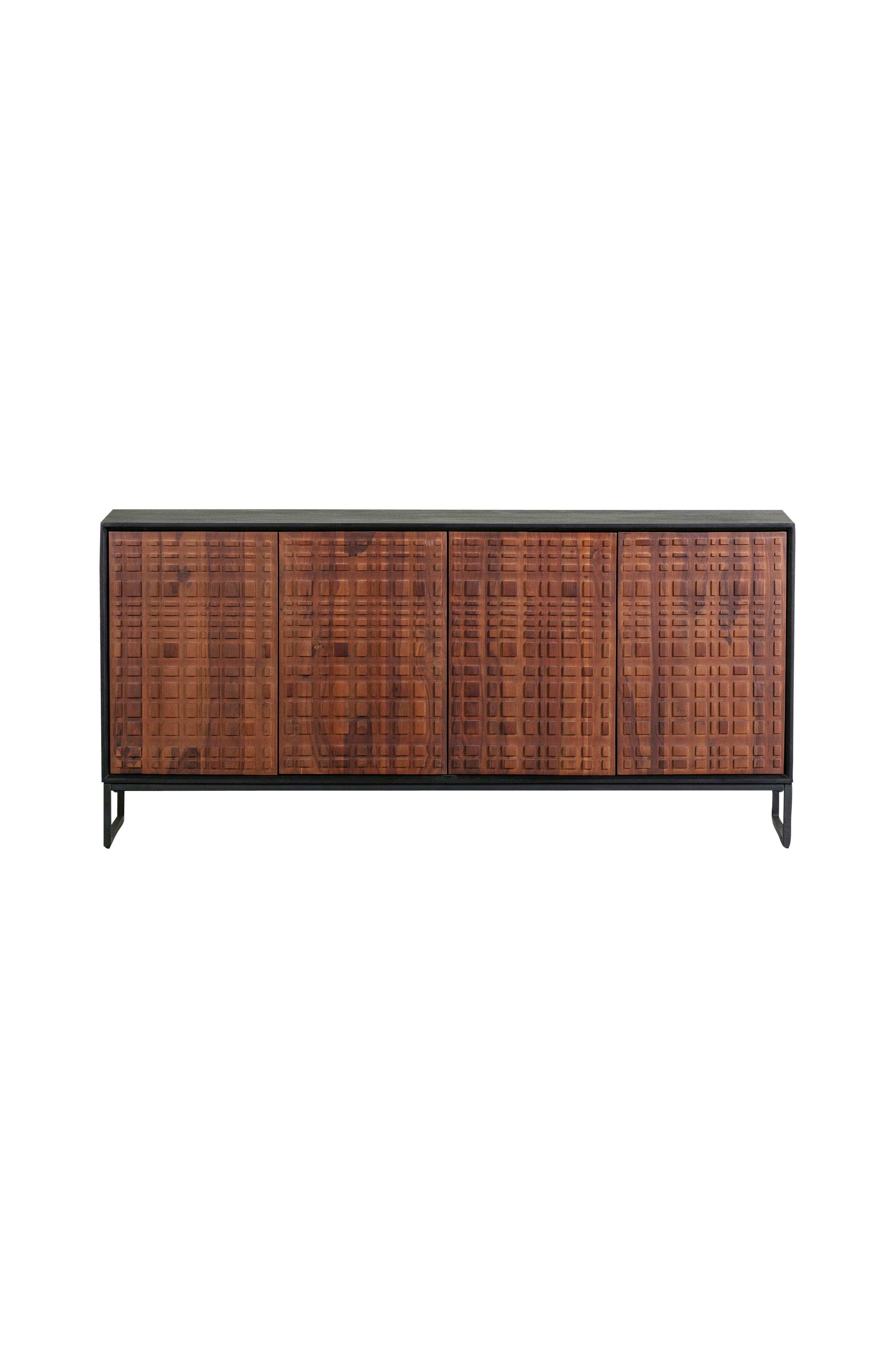 Skjenken har 4 dører. Dørene er lette å åpne fordi de er utstyrt med push-to-open-system. Bak hver dør er det en hylle som skaper to oppbevaringsrom med følgende mål (hxbxd): 29,5x82x34,5 cm. Totalt er det 4 oppbevaringsrom bak dørene. Bena er produsert i metall og er 17 cm høye.