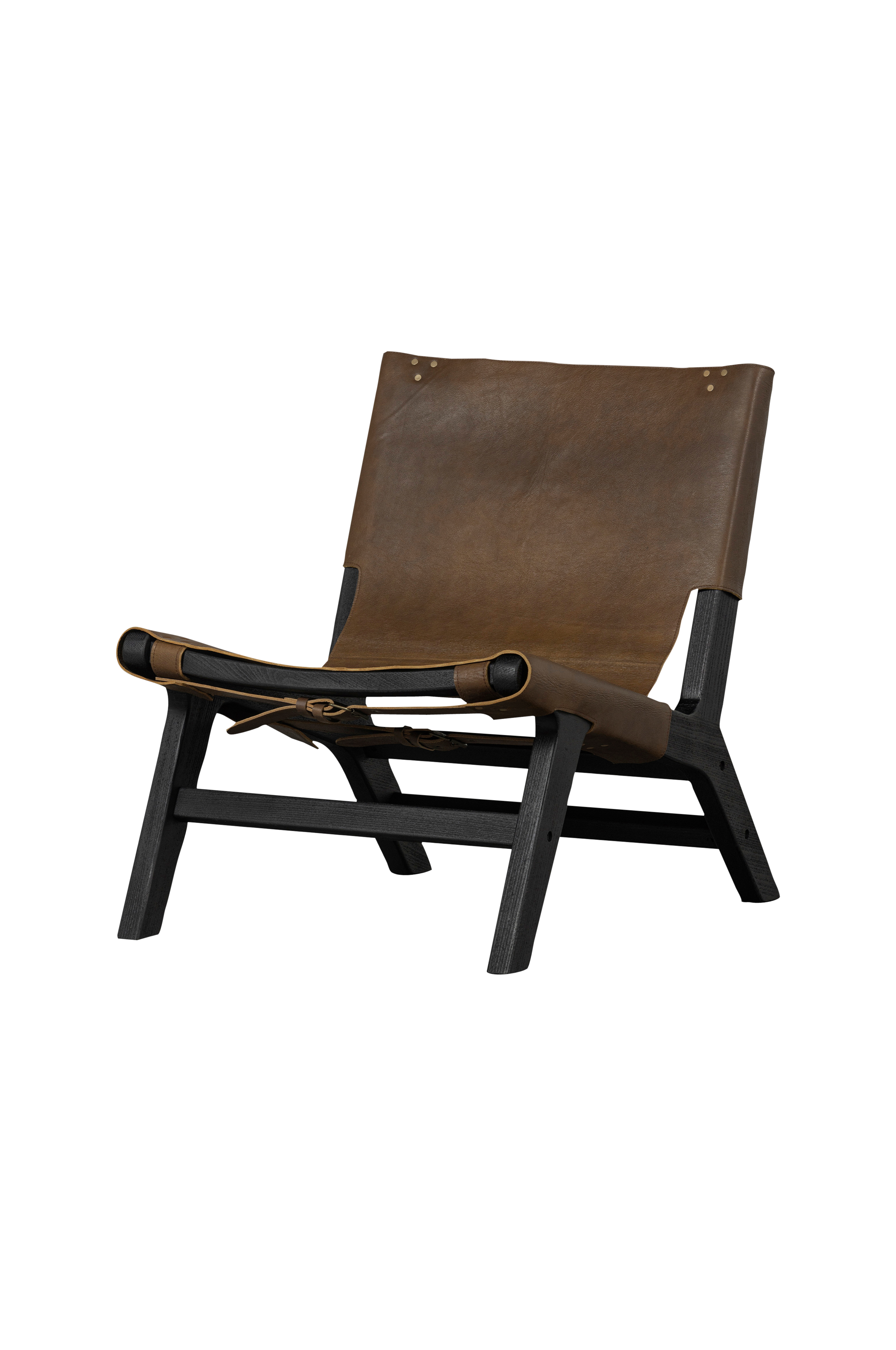 Stolen Consume forener det ville vesten med tidløs design. Kombinasjonen av den svartmalte trestammen med det varmbrune skinnsetet gir loungestolen ekte cowboystil. Nå kan du slappe godt av!