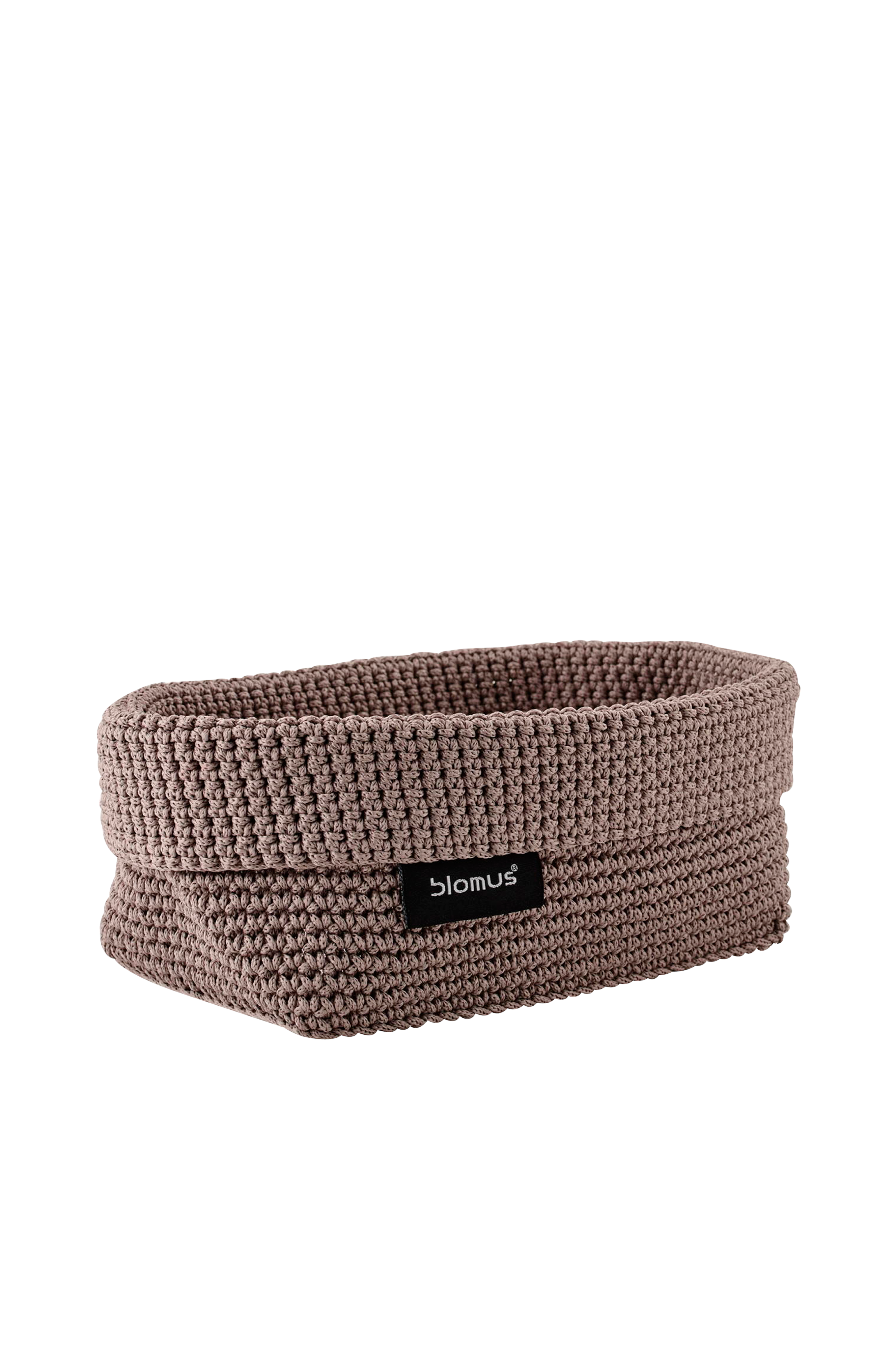 Vakker kurv i heklet tekstil. Praktisk oppbevaring på baderommet for alle småting som sminke, bomull eller q-tips. Kan også brukes som brødkurv eller oppbevaring på kontor eller barnerom.