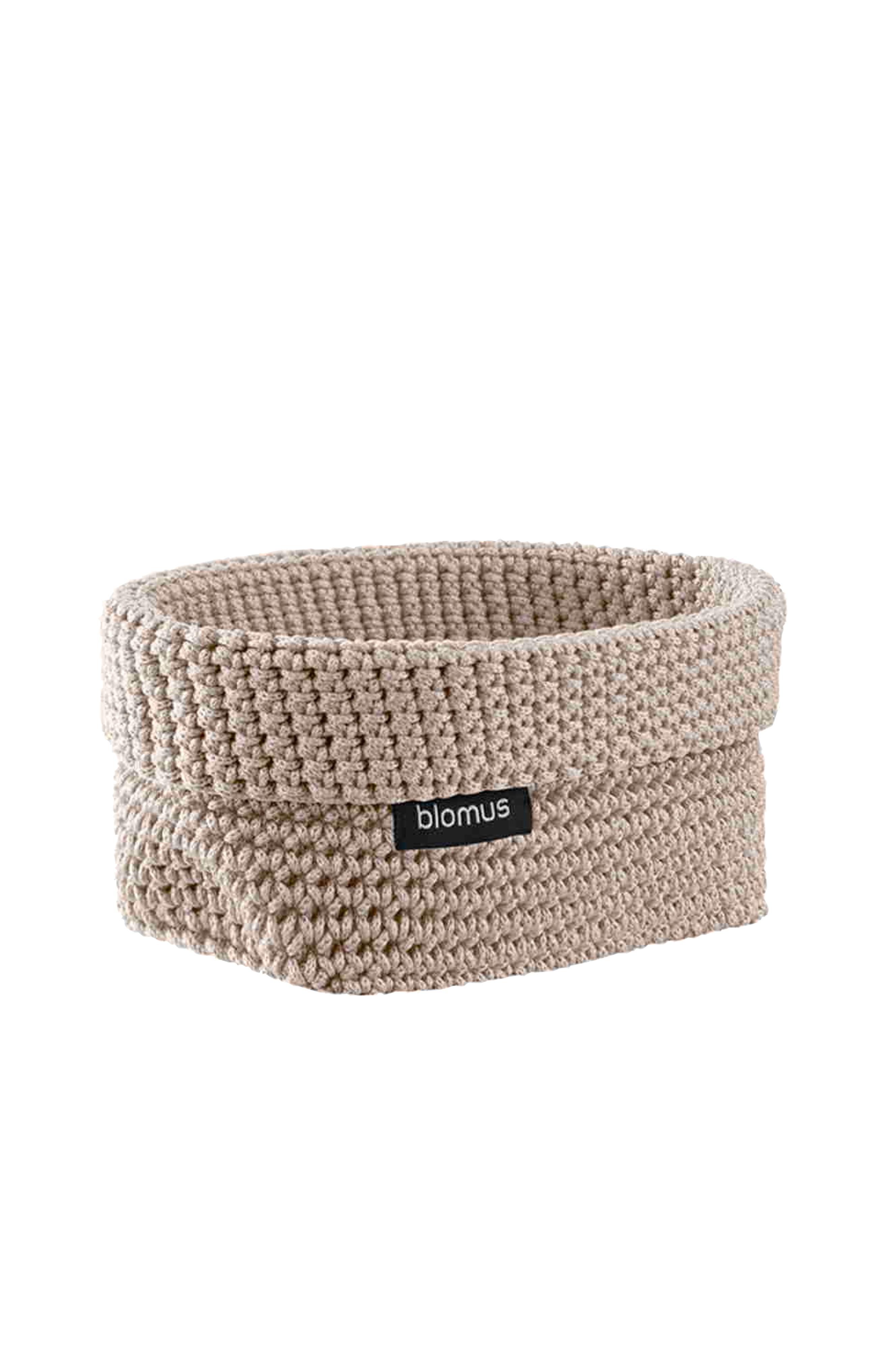 Vakker kurv i heklet tekstil. Praktisk oppbevaring på baderommet for alle småting som sminke, bomull eller q-tips. Kan også brukes som brødkurv eller oppbevaring på kontor eller barnerom.