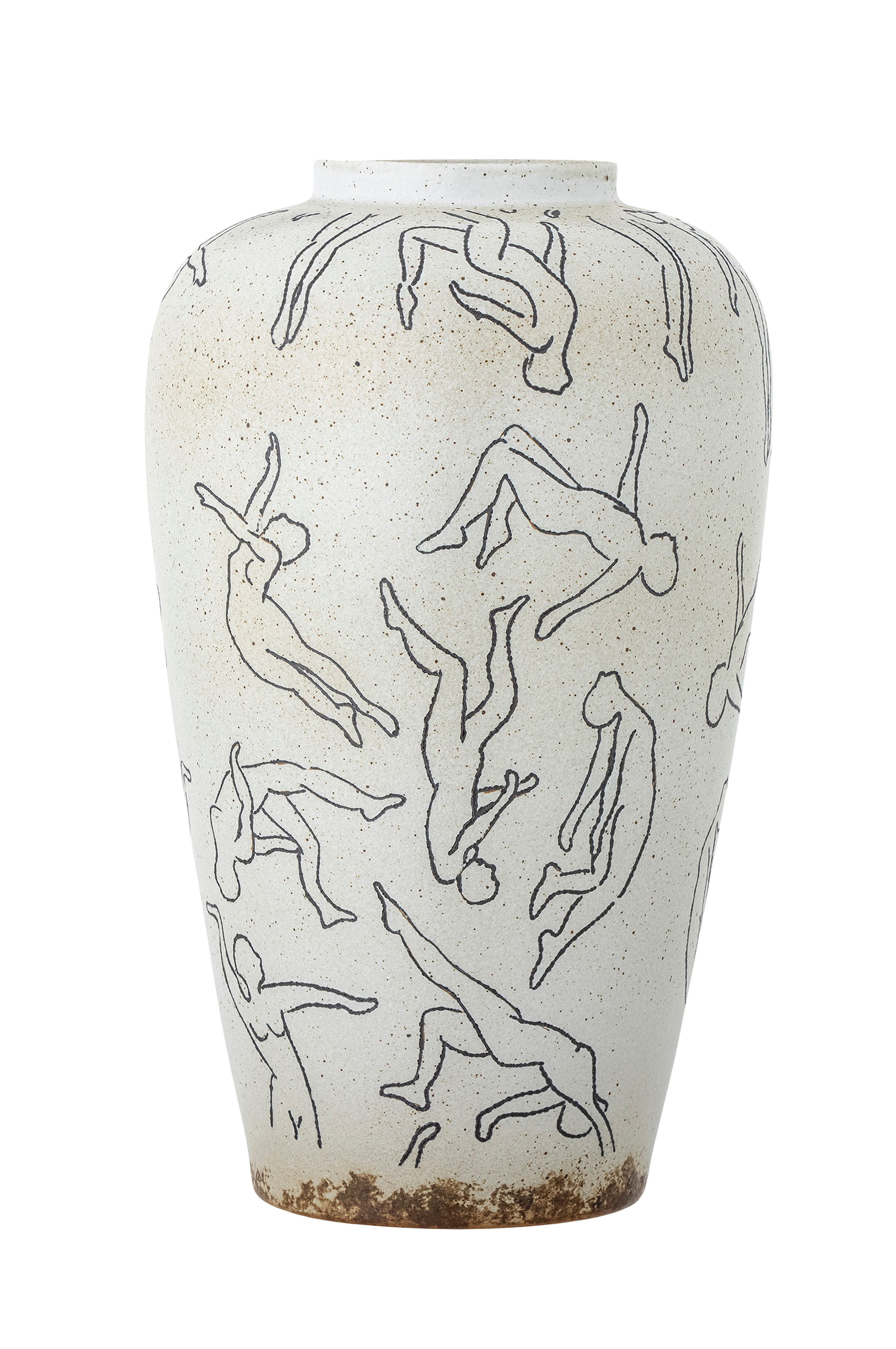 adah vase fra bloomingville er en vakker, skulpturell vase som skiller seg ut med sitt kunstneriske mønster av kvinnelige silhuetter. Vasen har en klassisk høy form og er laget av steintøy med en fin lys glasur som skaper en vakker kontrast til det mørke mønsteret. På grunn av glasurens beskaffenhet kan det forekomme fargevariasjoner, noe som gjør hver vase unik. D21xh34 cm