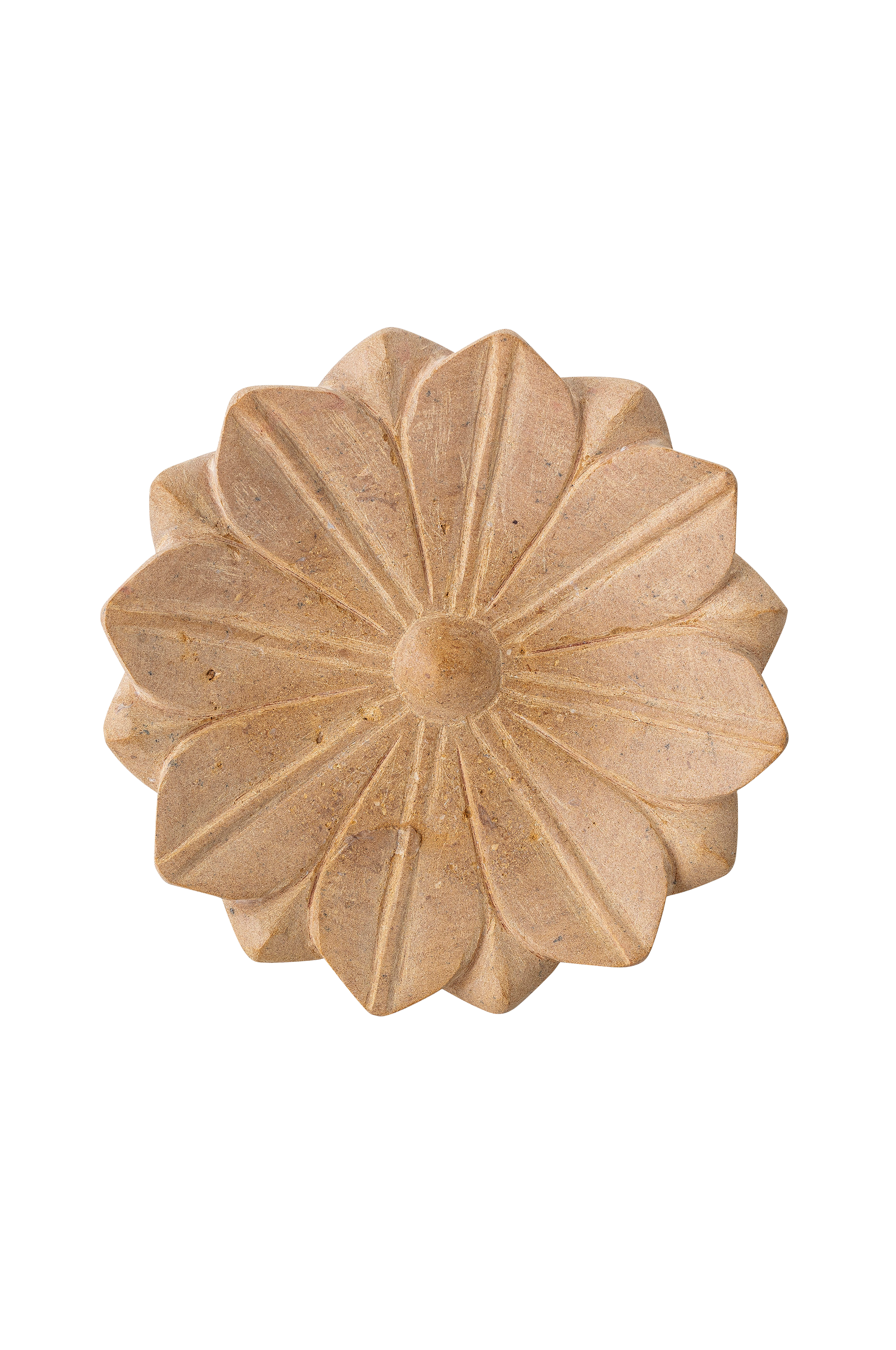 Vakkert brett av marmor i varm sandfarge. Brettets design i form av en blomst gjør den til en dekor i seg selv - som bringer en del av naturen inn i hjemmet på en elegant måte. Brettet er til og med egnet for matvarer slik du kan bruke det for en annerledes presentasjon av mat eller snacks ved spisebordet. Eller du kan bruke det som fin pynt i vinduskarmen eller på kommoden.